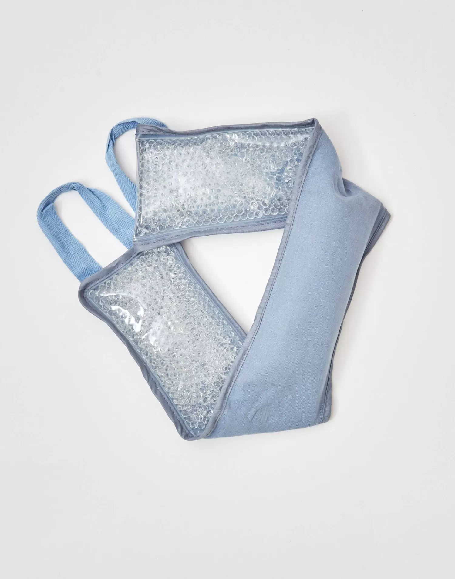 Gel band for hot or cold therapy with cotton cover. Relieves tension in neck, shoulders and back.