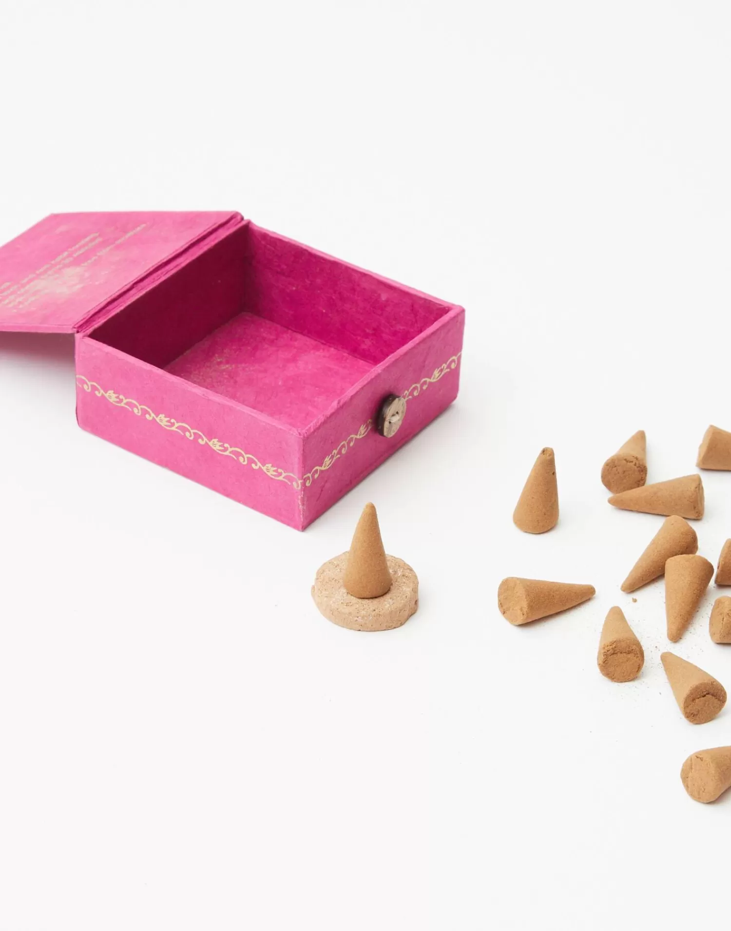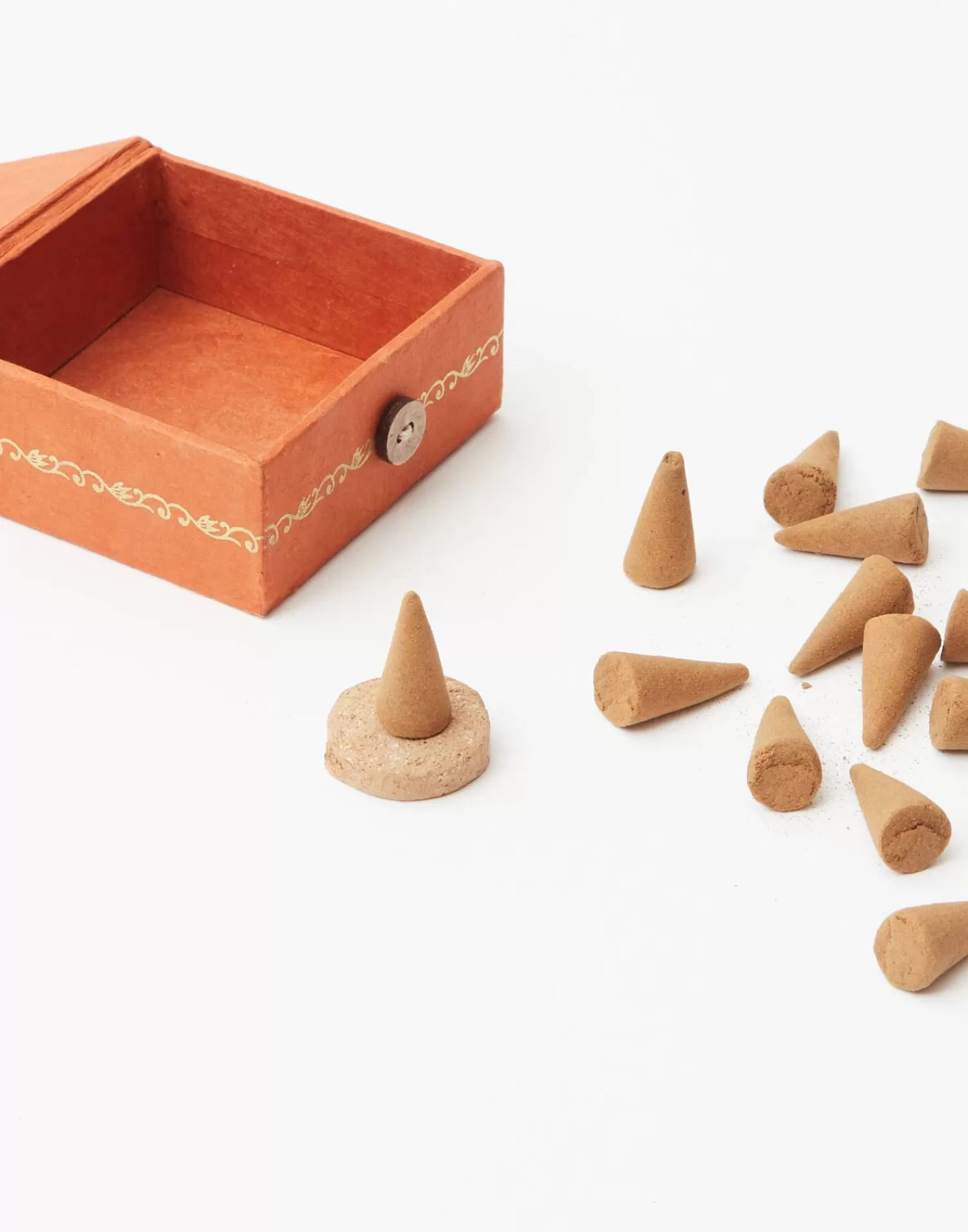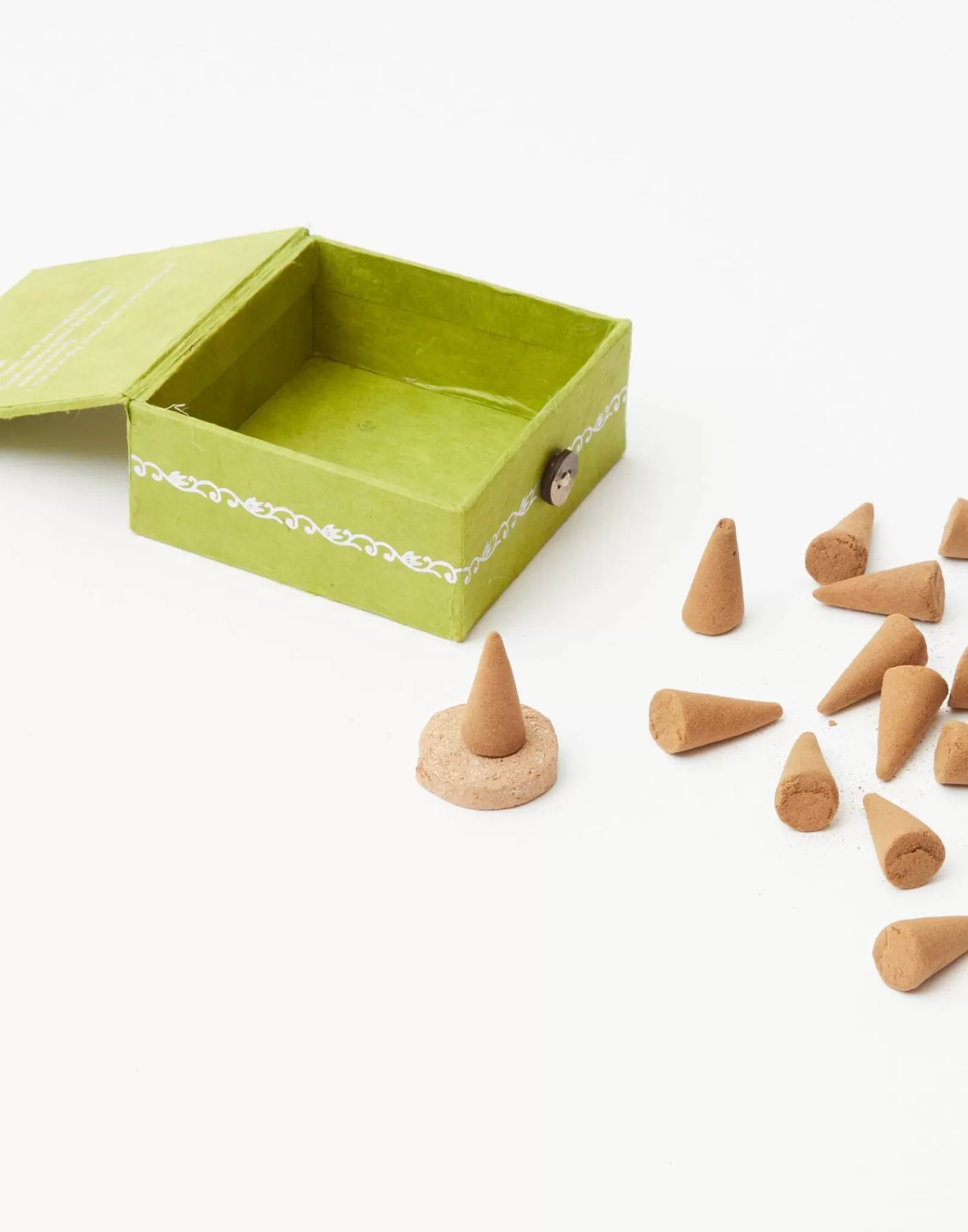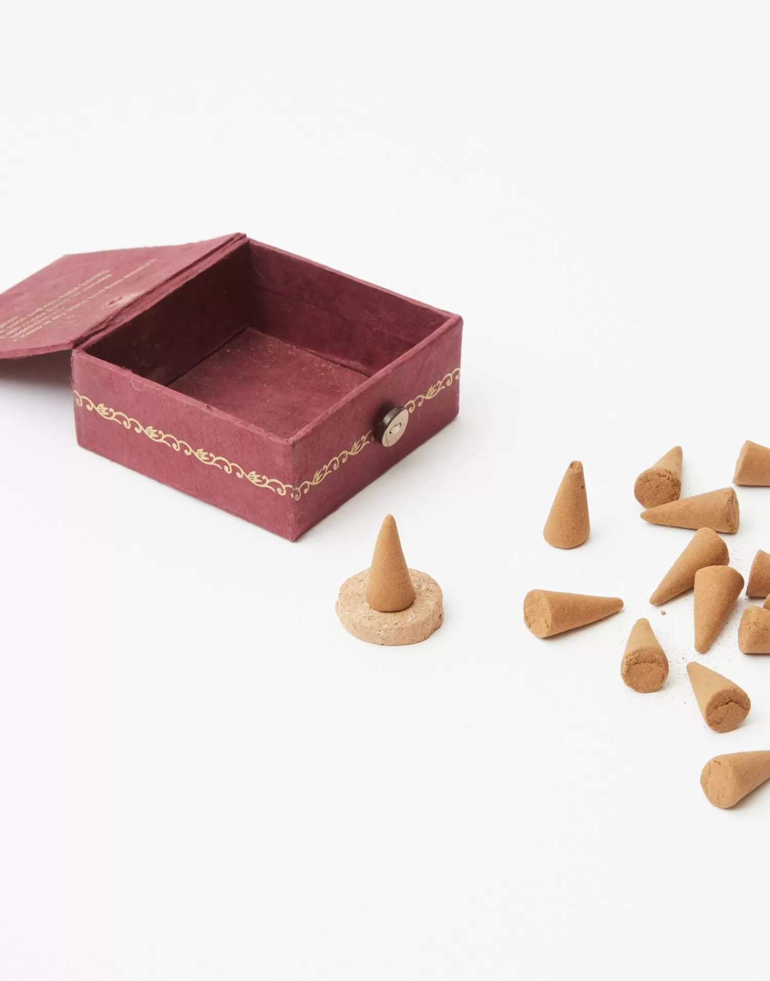 Incense in handmade cone format in Nepal and burner.25 cones.
