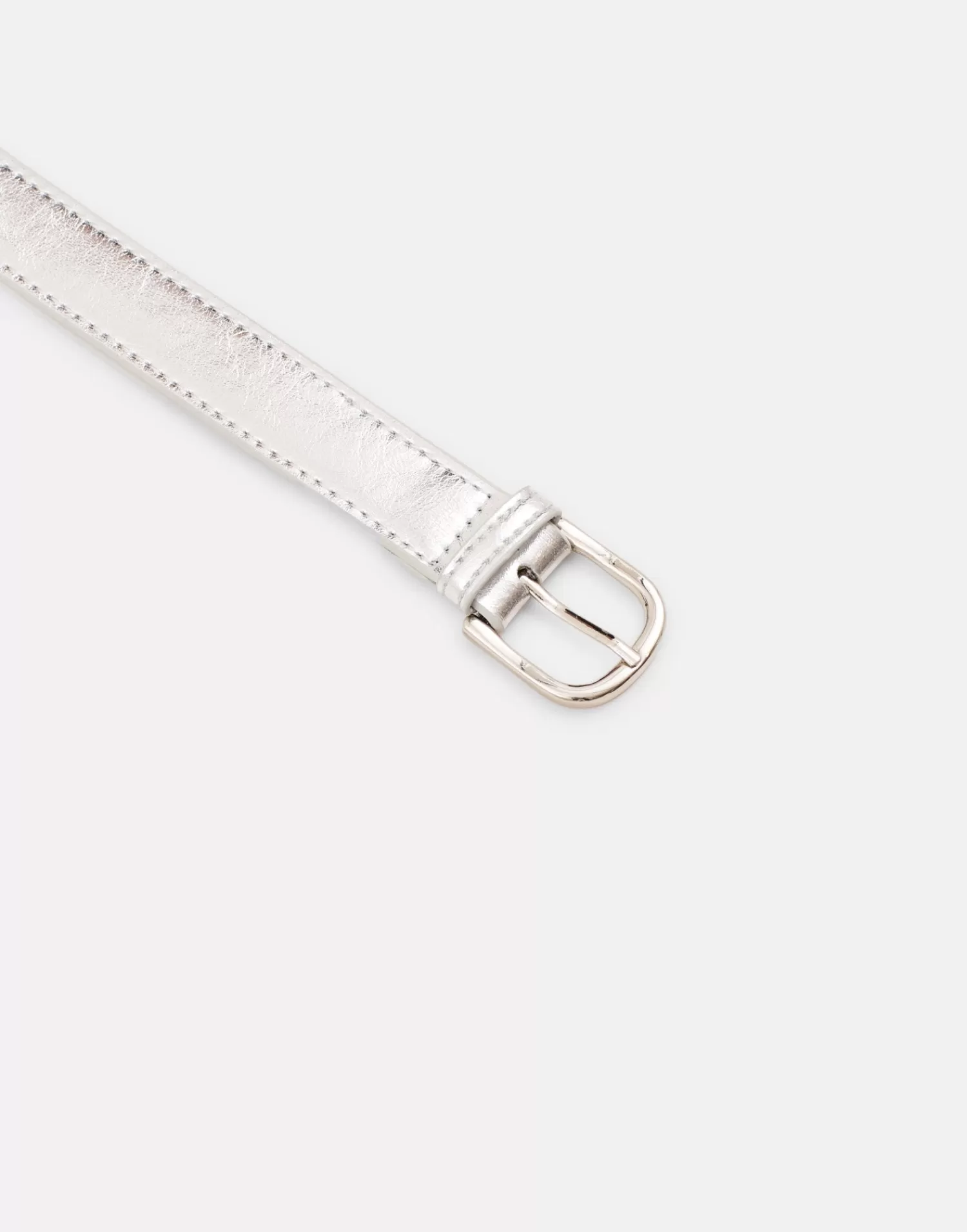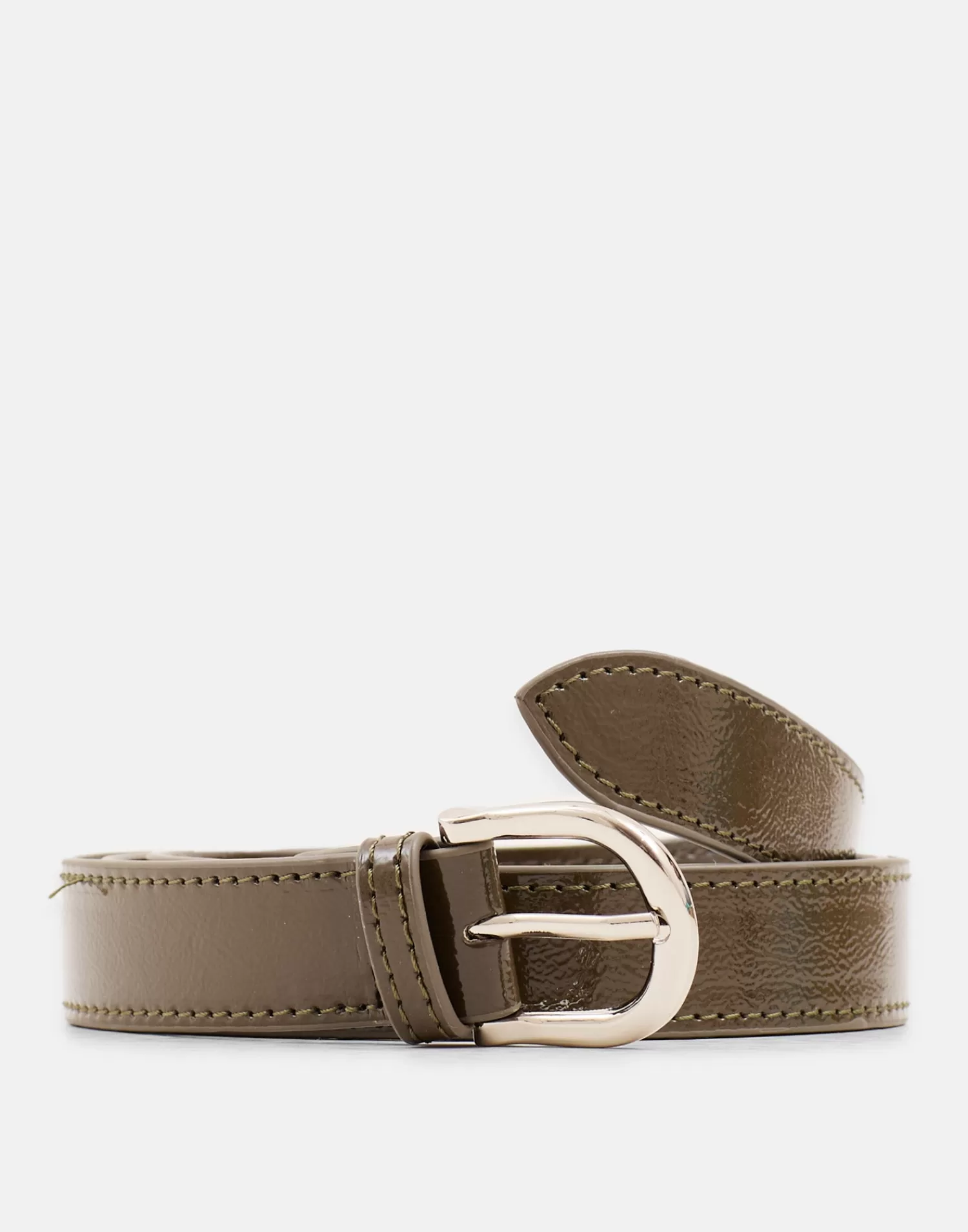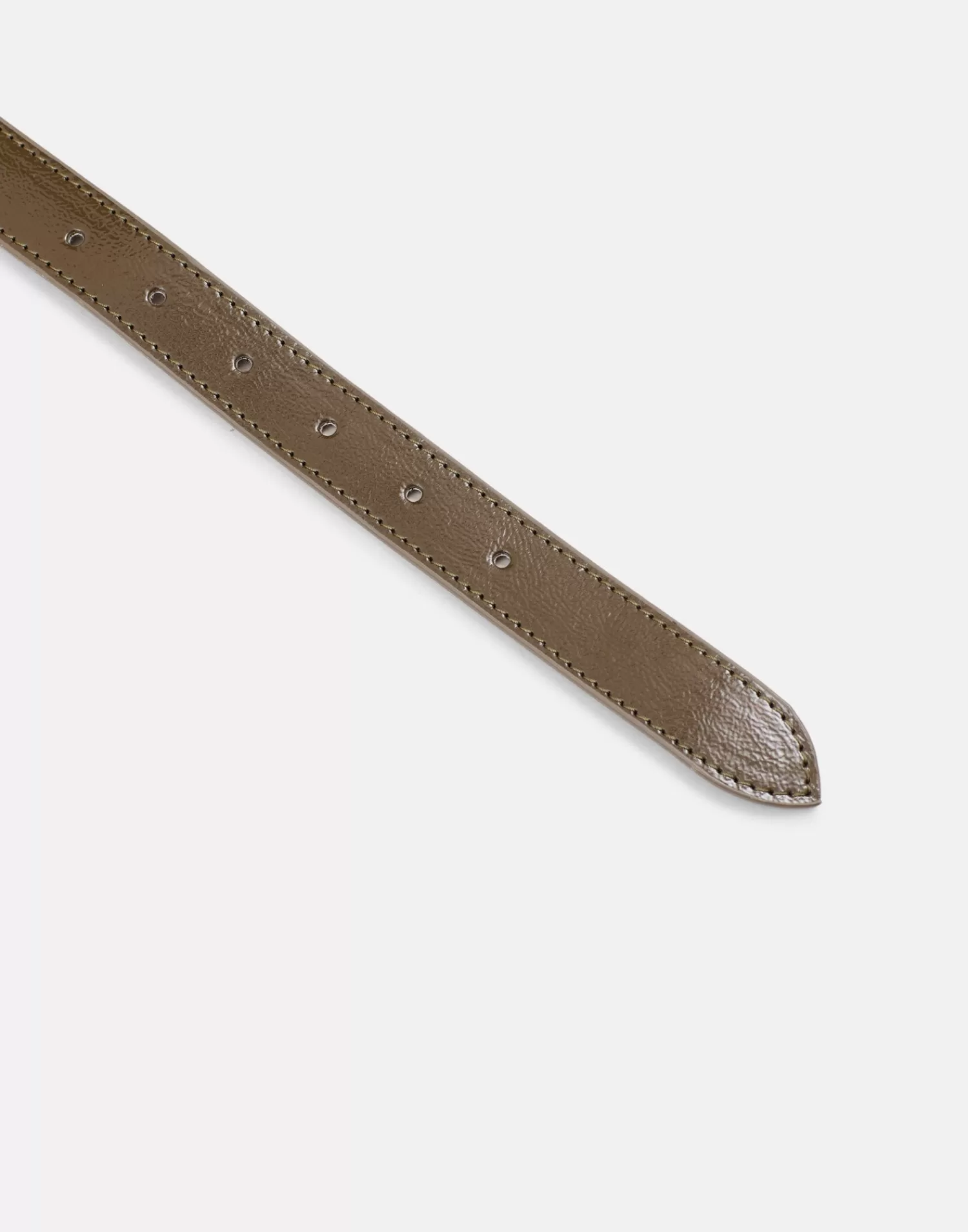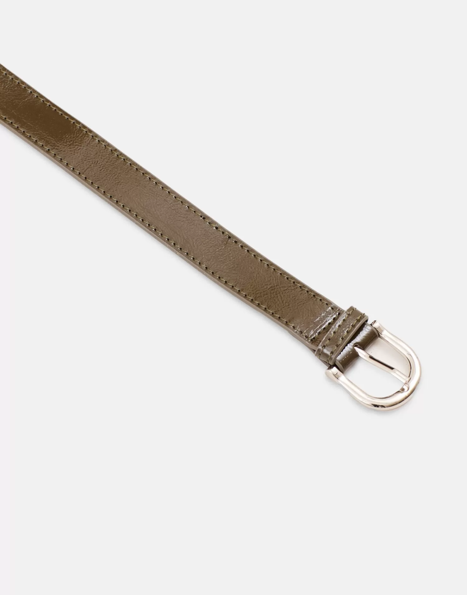 Belt featuring a patent-like finish and a metal buckle. Combine it with our matching wallet.