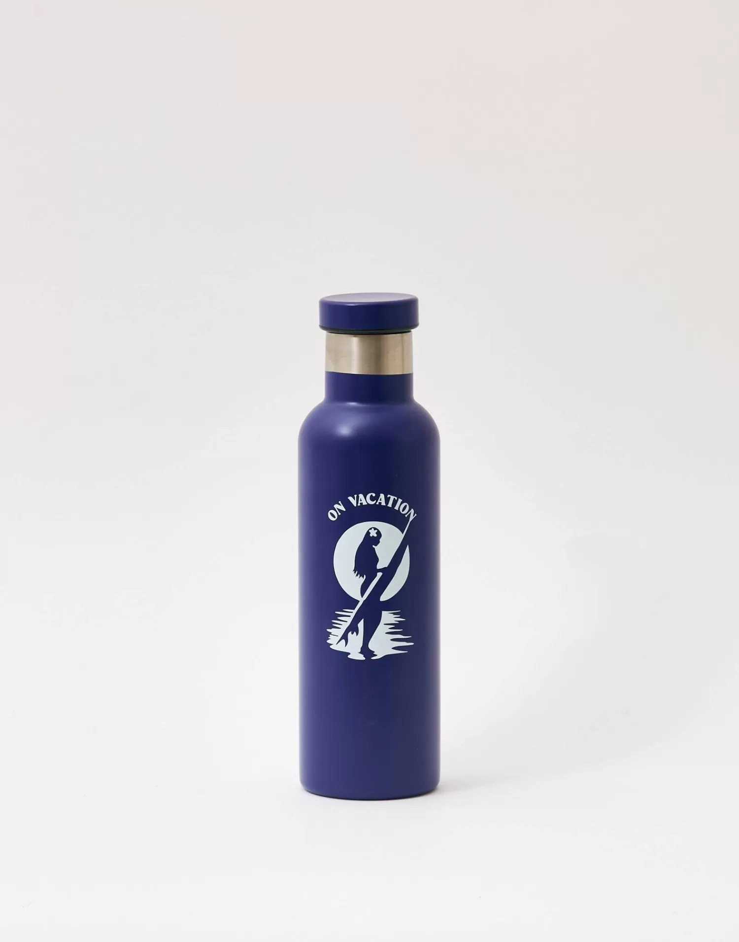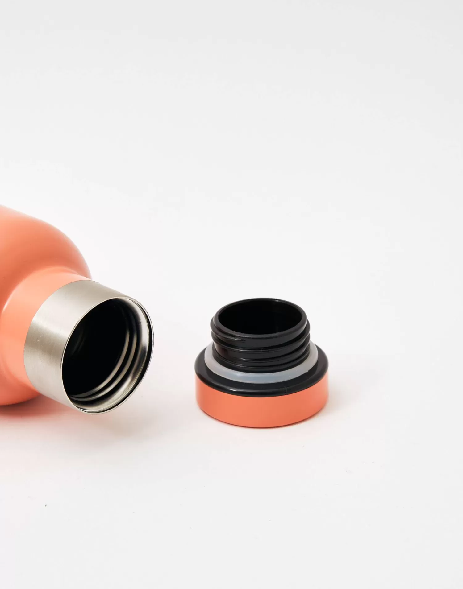 Stainless steel water bottle featuring graphics at the front.500 ml