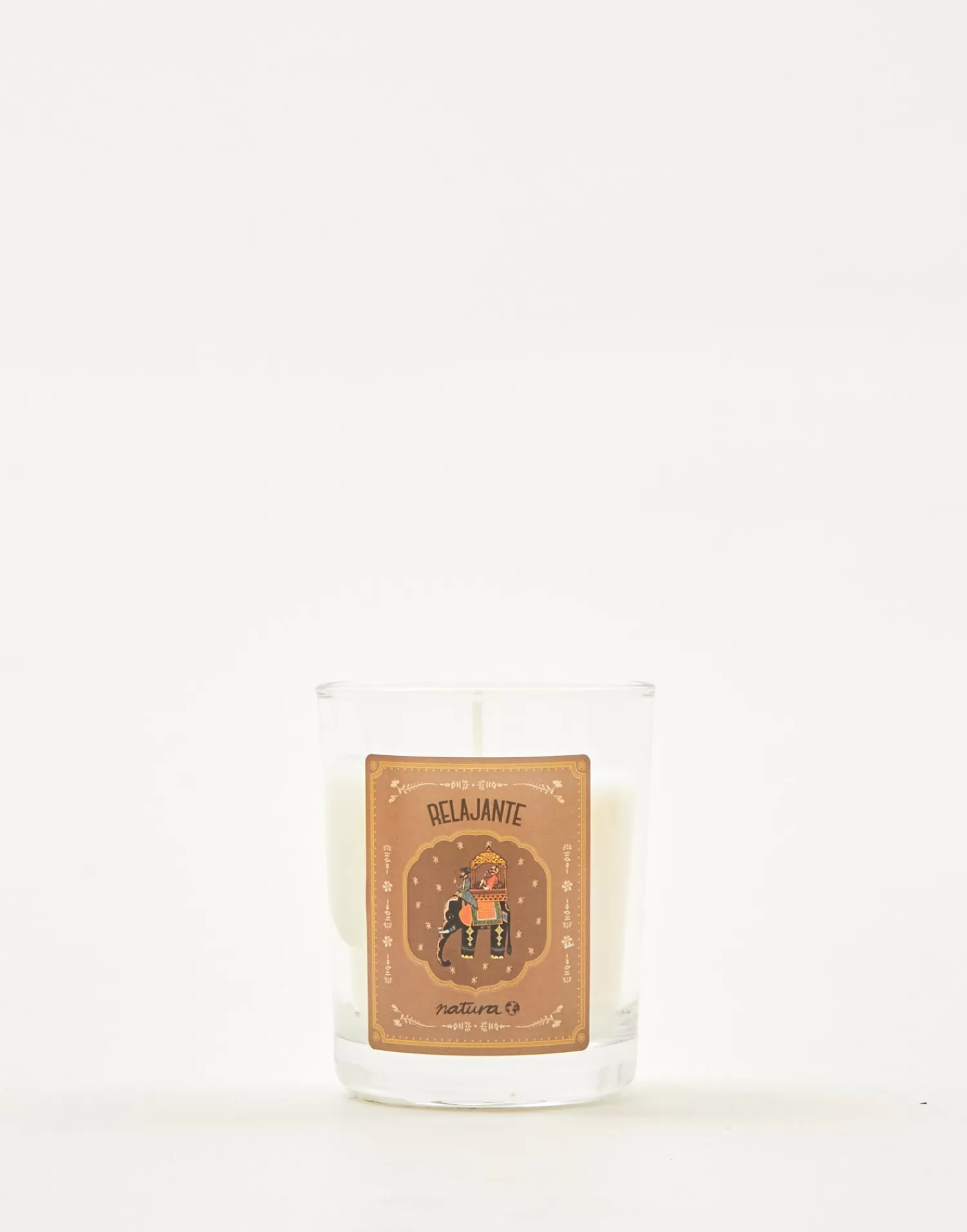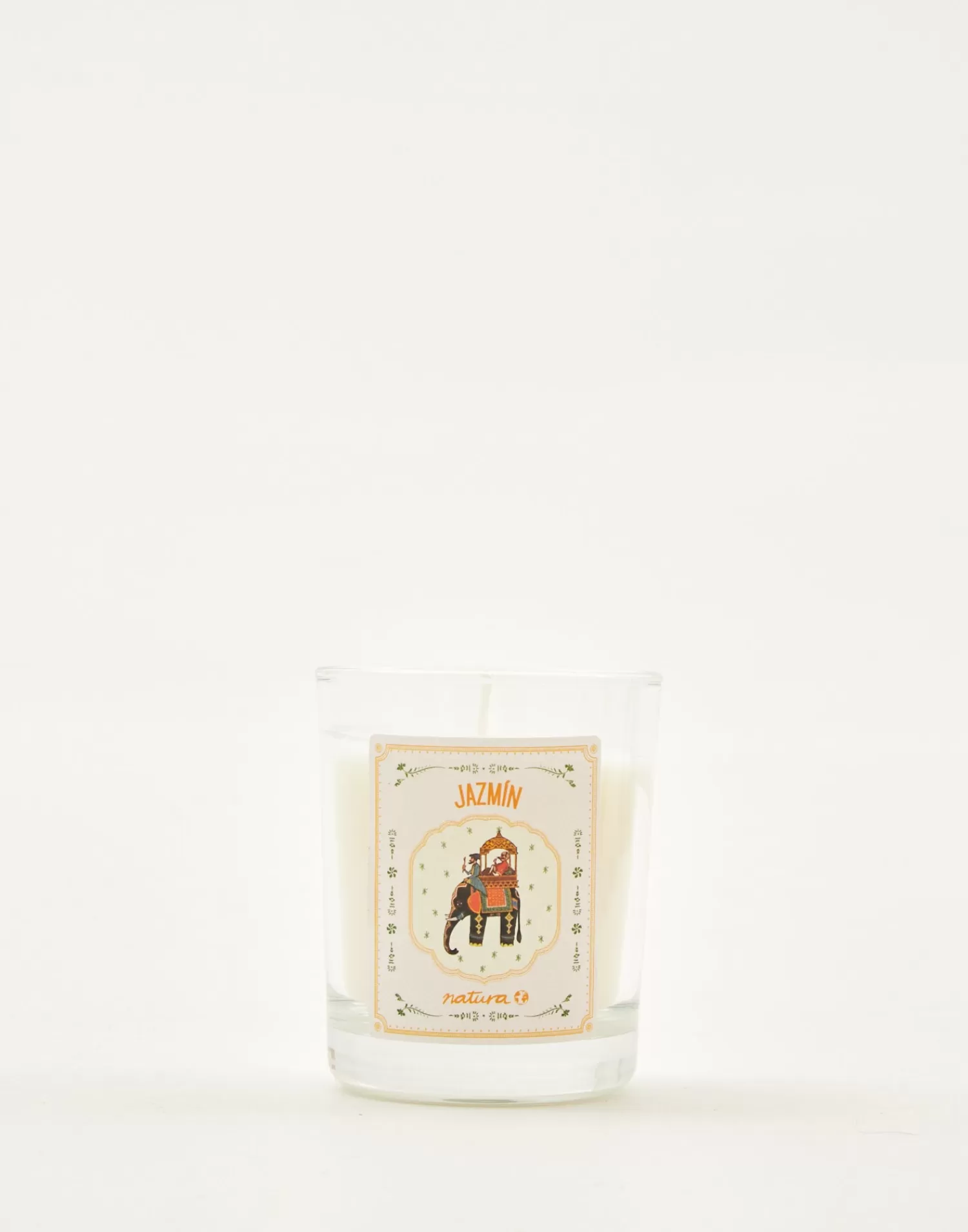 Soy wax candle with cotton wick and glass container. Made in Spain.