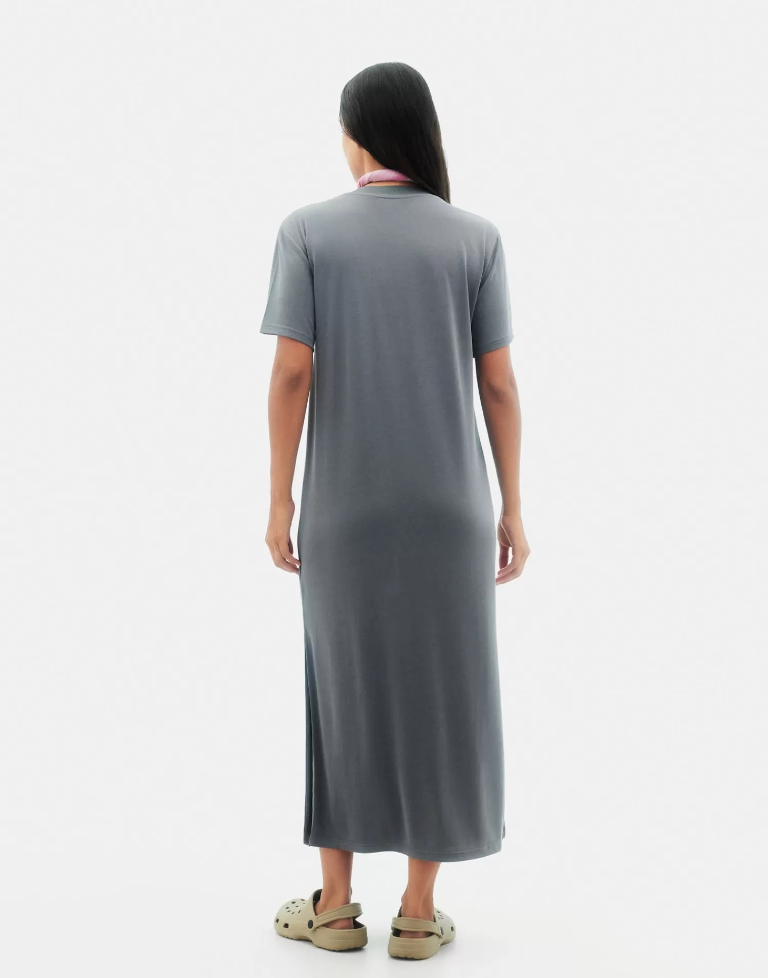 Long dress featuring short sleeves and a V-neckline. Complete with side slits at the hem.The model is 1.71 m tall.