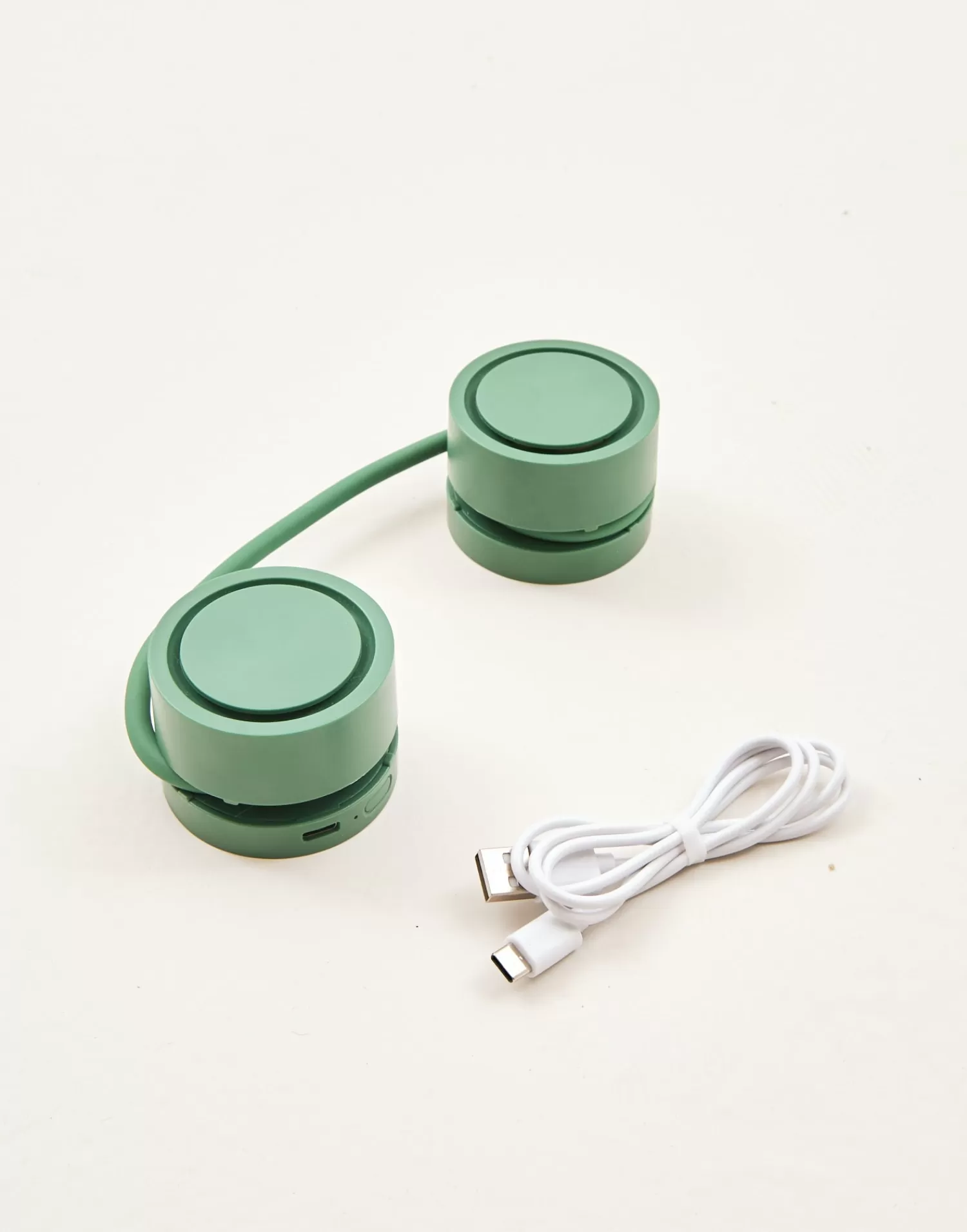 Neck fan with three speeds, perfect for taking with you wherever you go, adjustable and comfortable hanger.