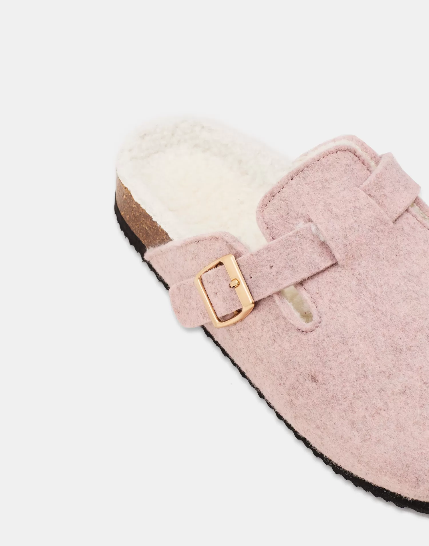 Felt clog with a warm interior lining. Featuring a buckle detail and cork sole.