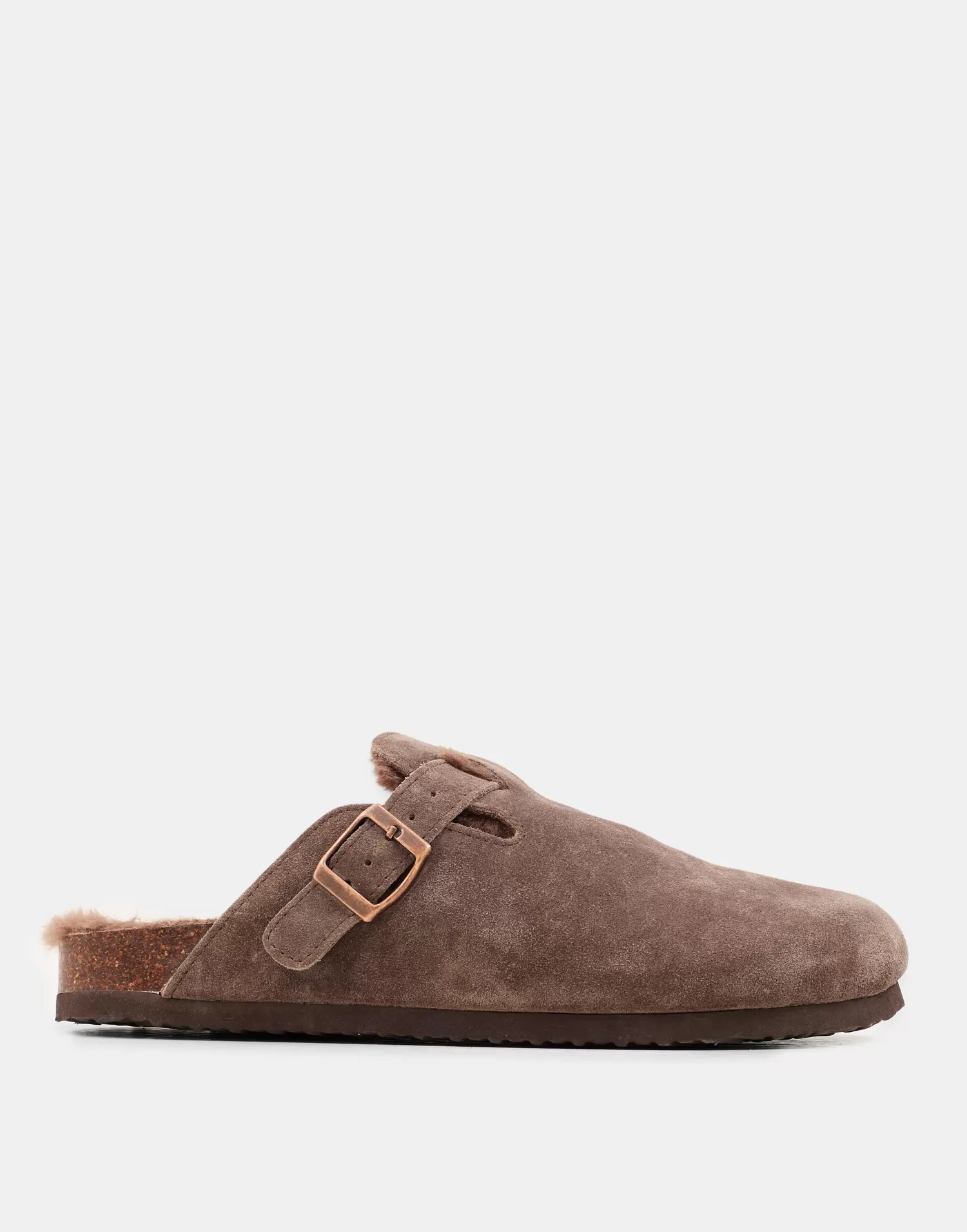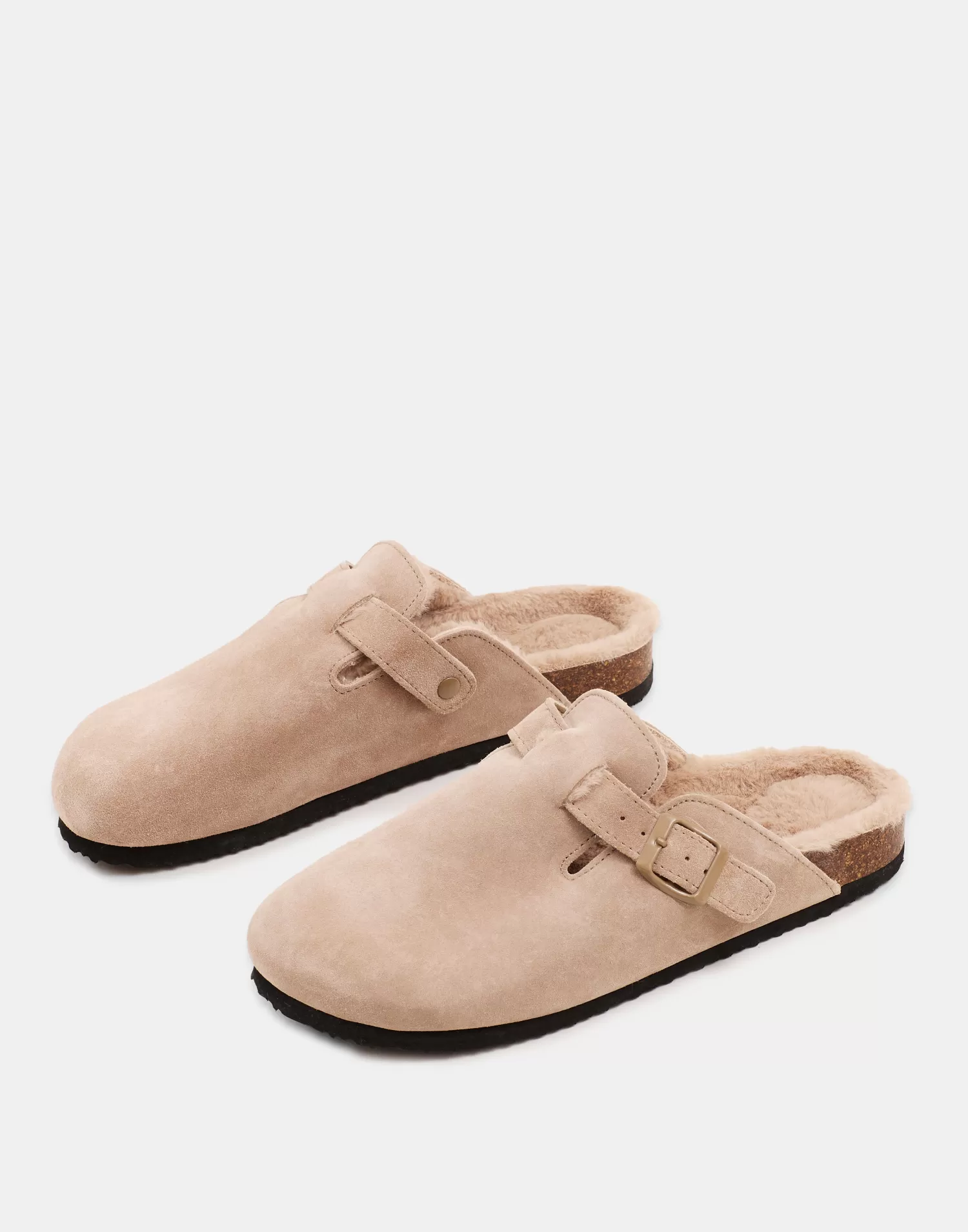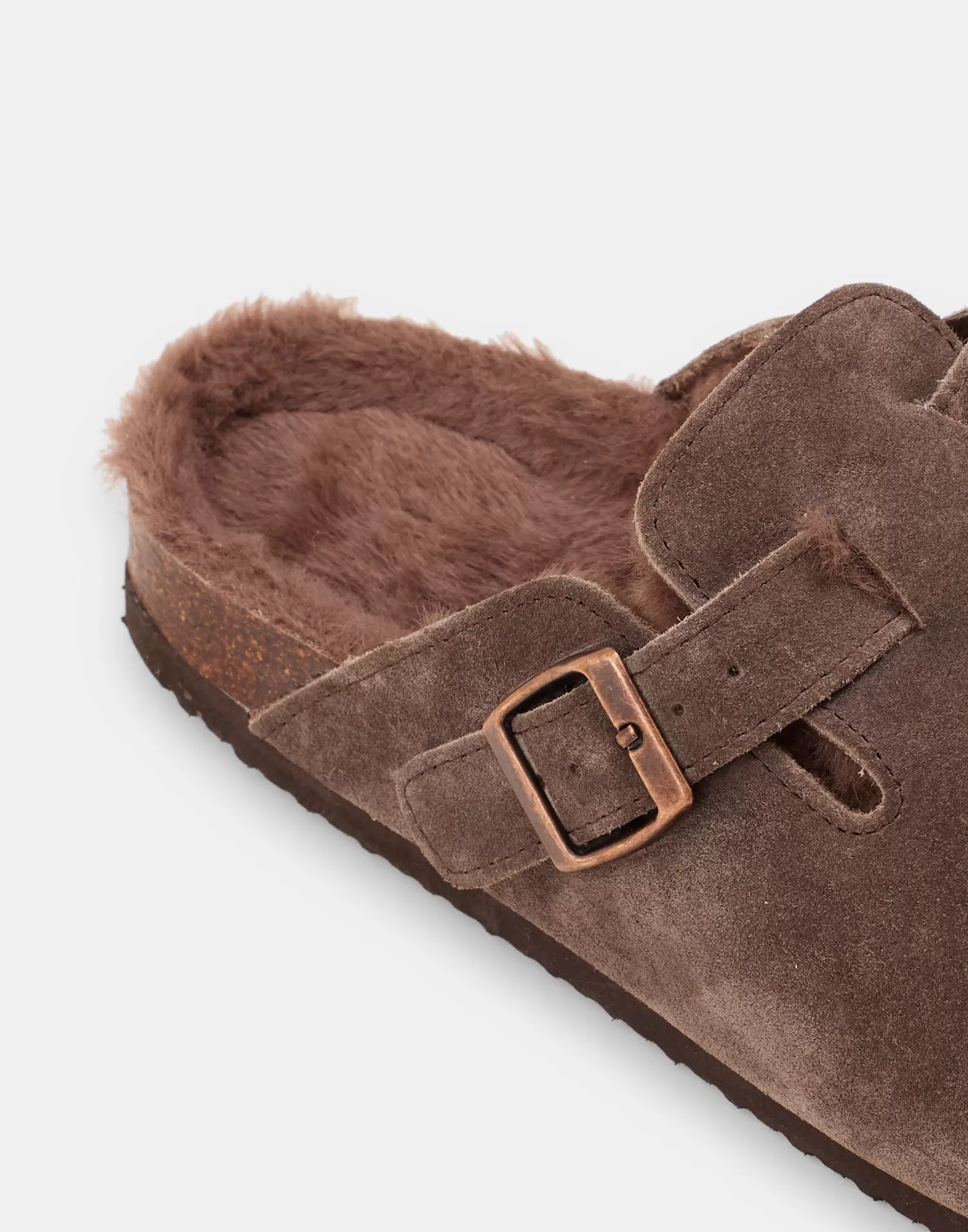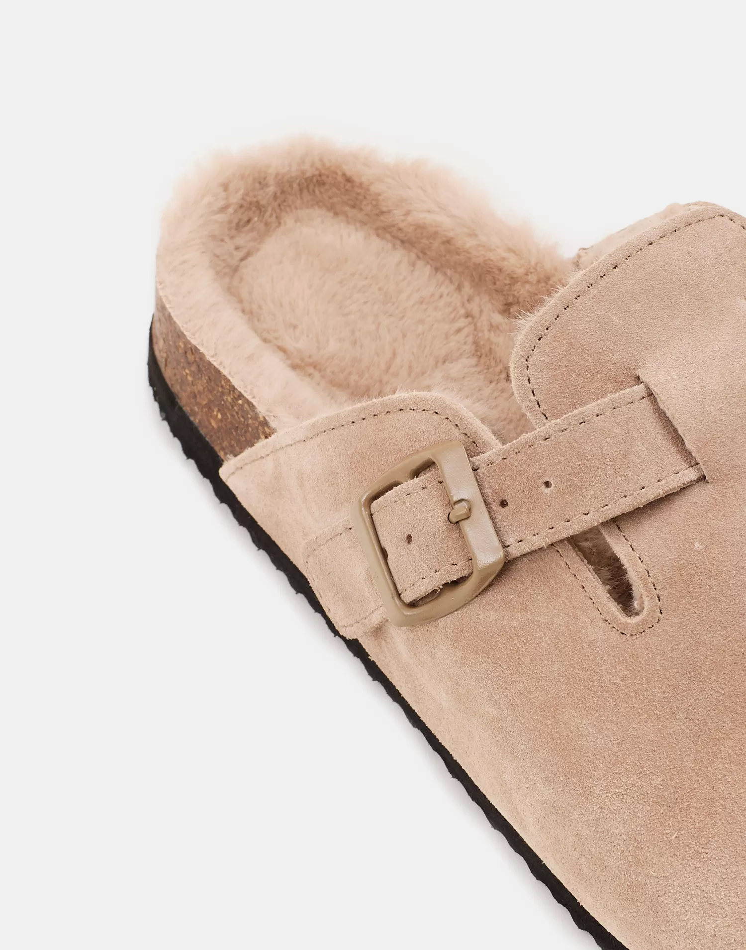 Leather clog with warm lining. Featuring buckle detail and cork sole.