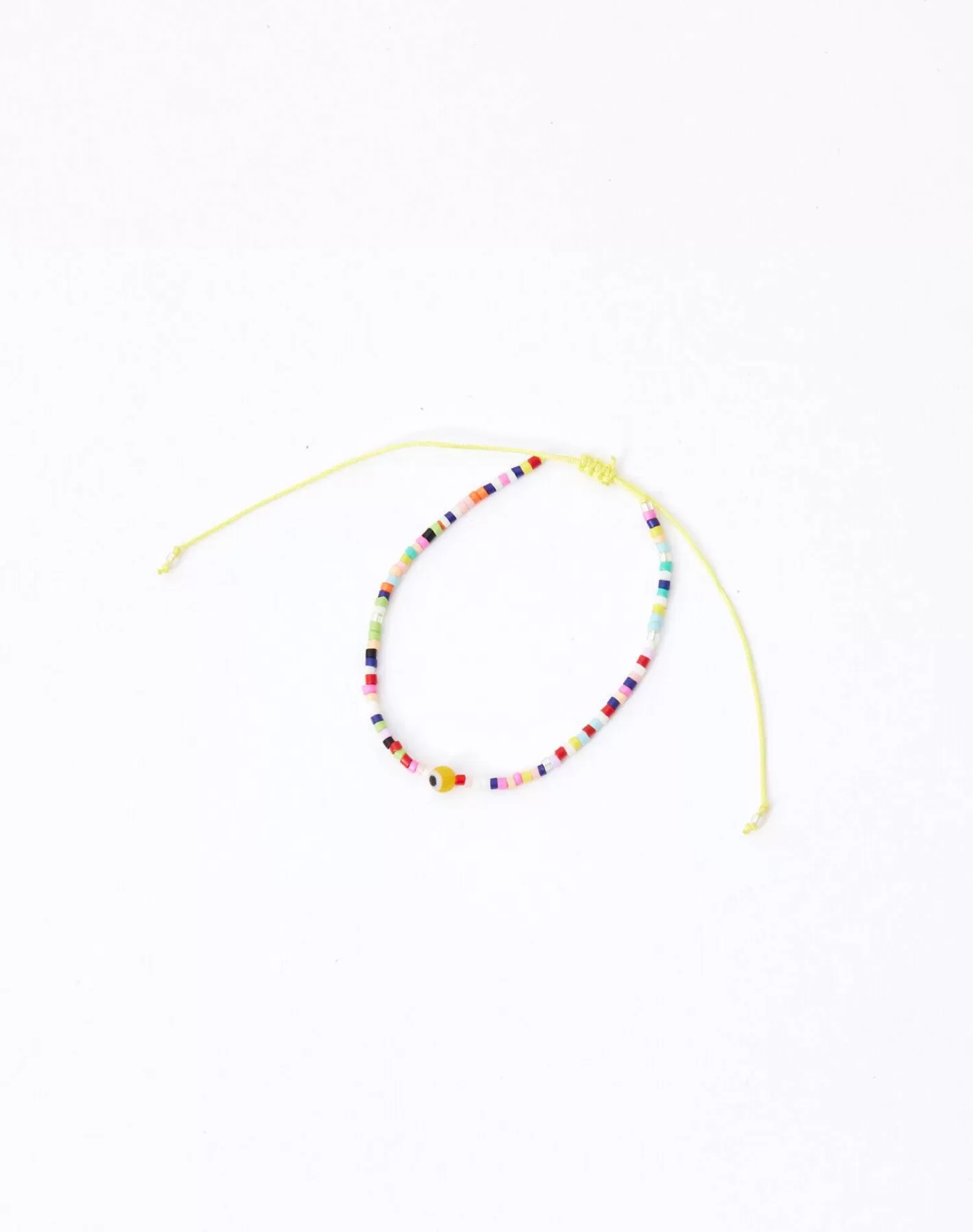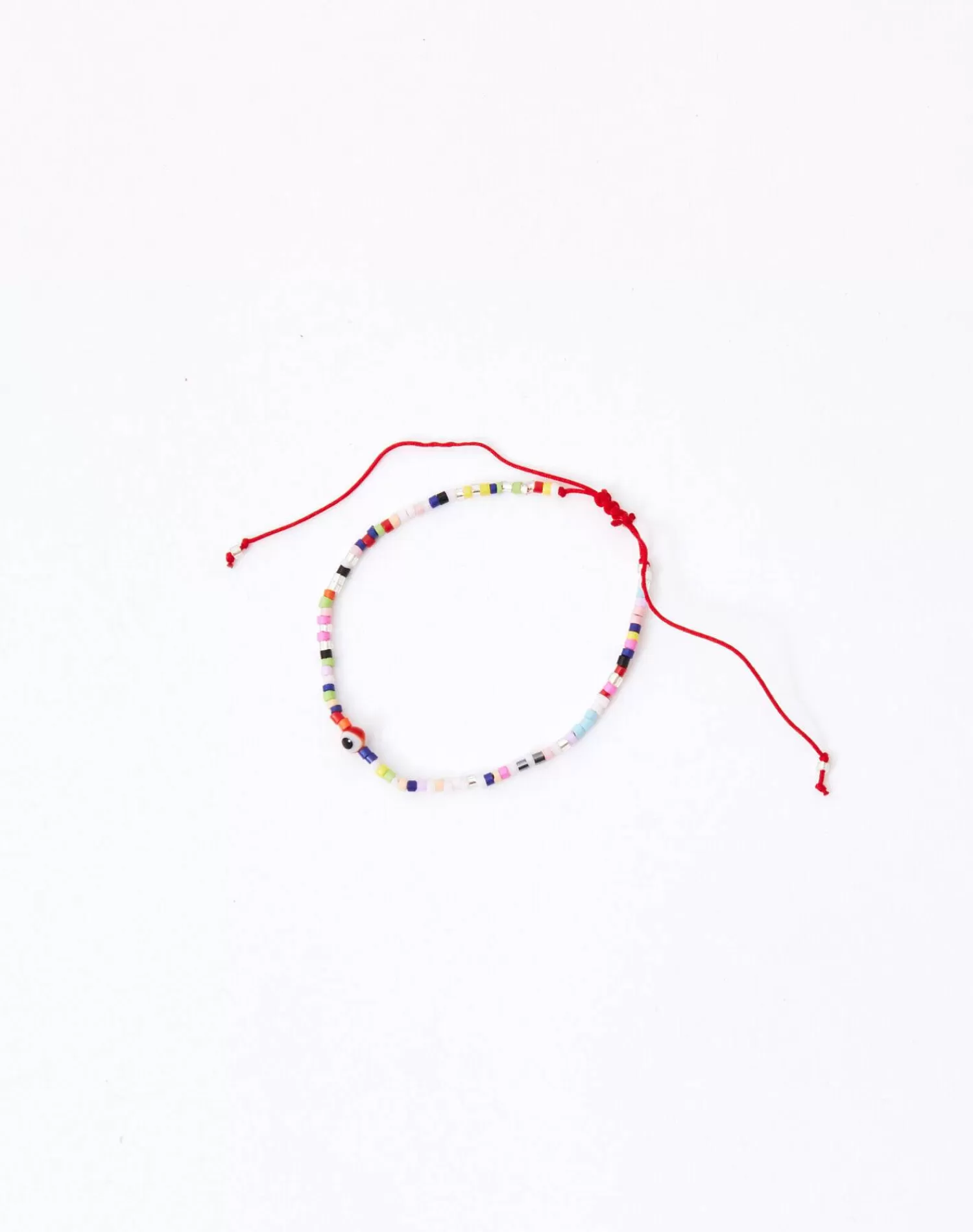 Good vibes with this evil eye charm beads thread bracelet. Complete with a slide pull closure.