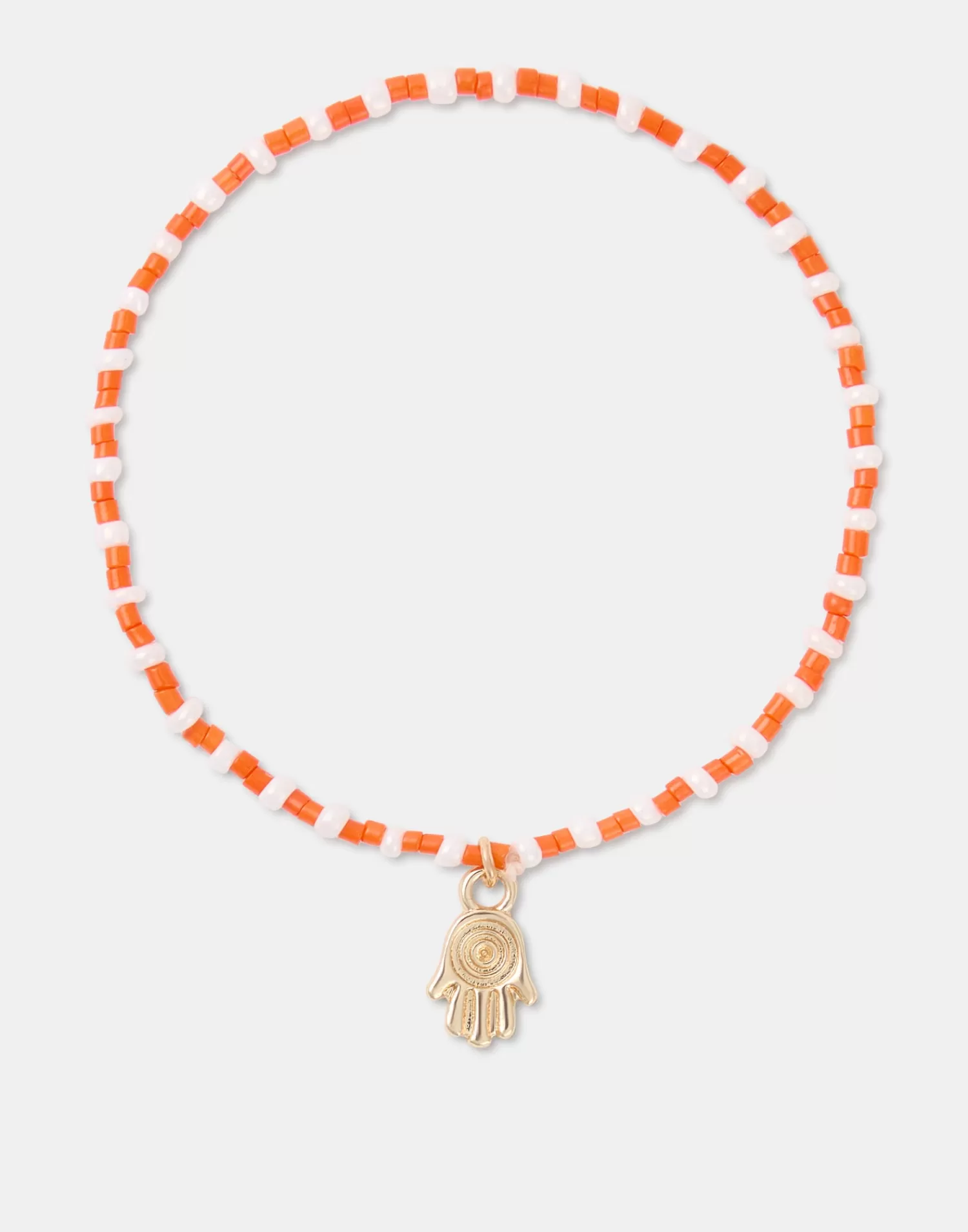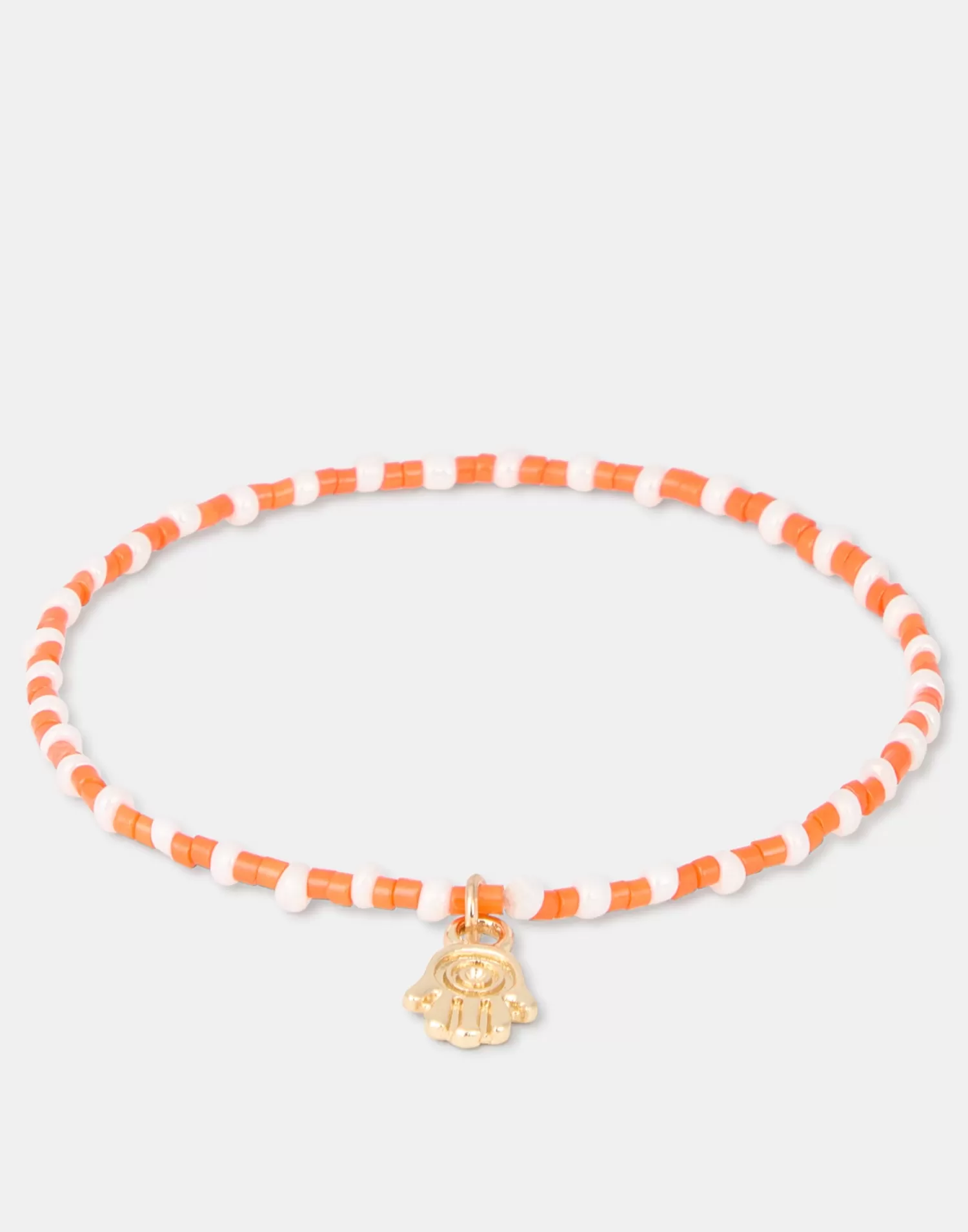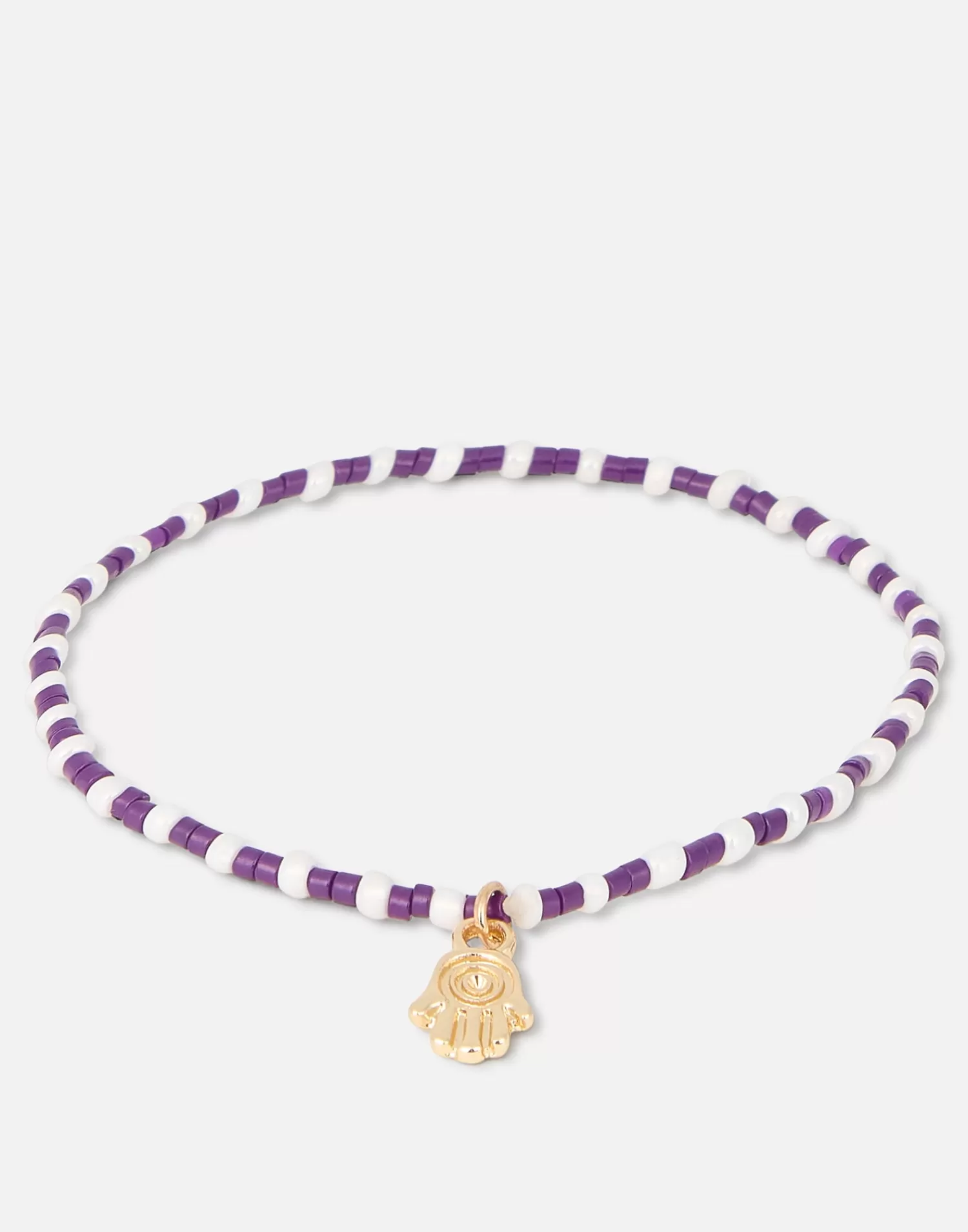 Elastic bracelet featuring colored beads and a gold charm.
