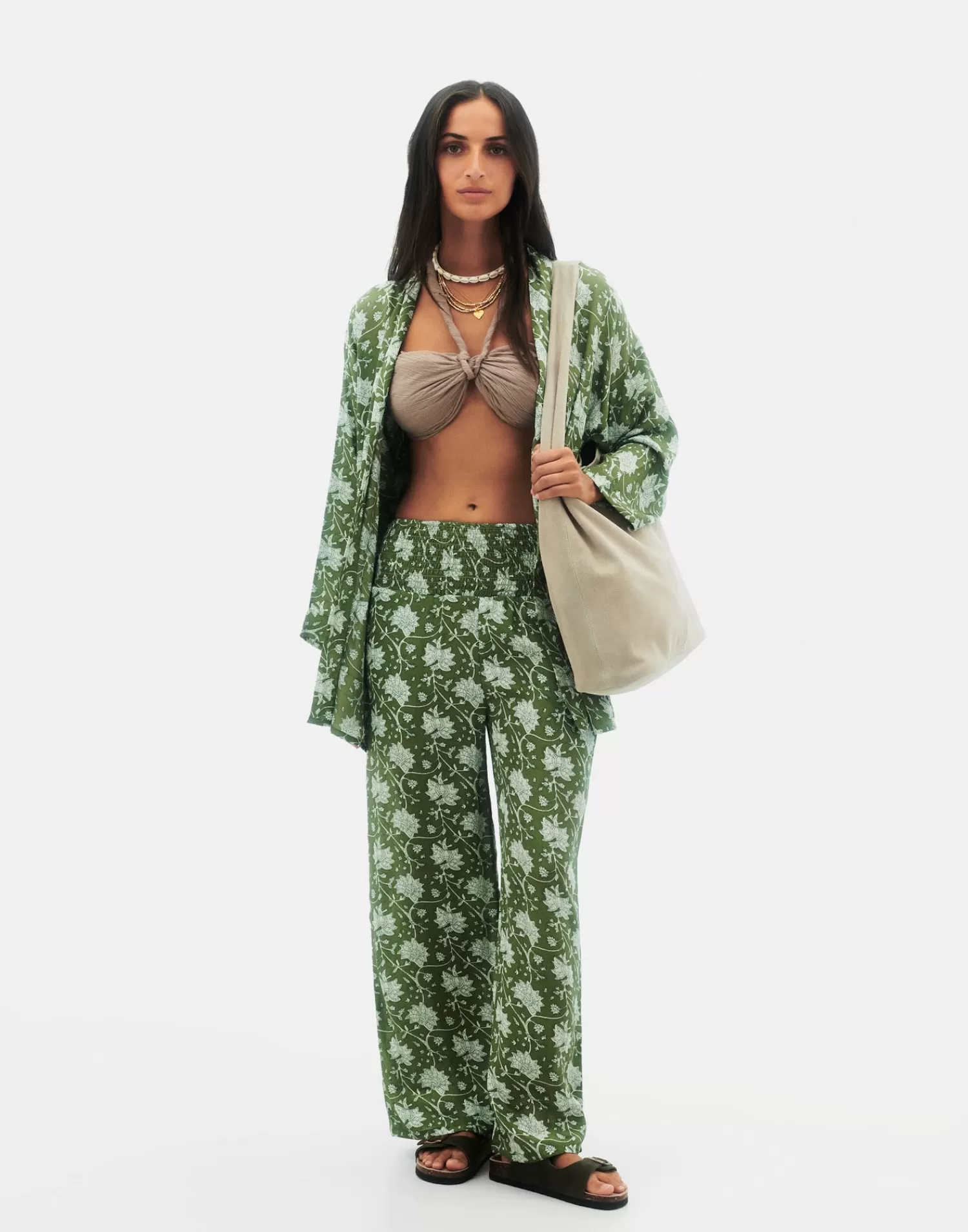 Printed straight-leg, high-waisted pants. With elastic waistband and silk blend fabric.