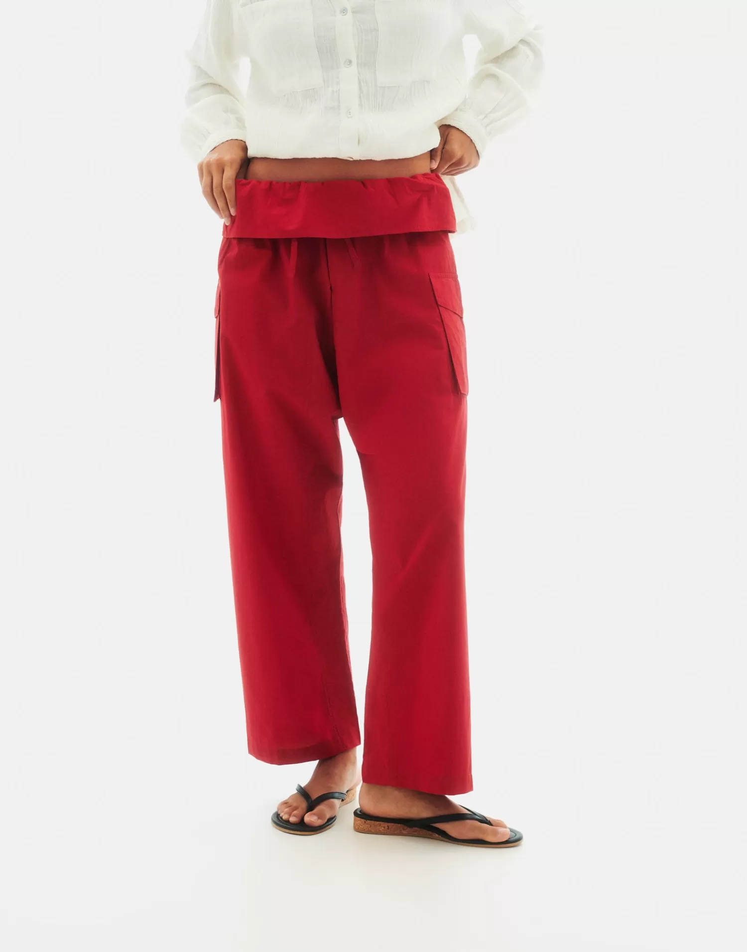Relaxed-fit cargo pants featuring an elastic waistband and patch pockets. Inspired by Thai pants.