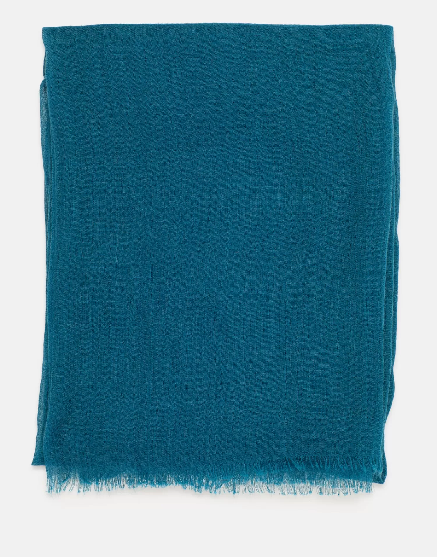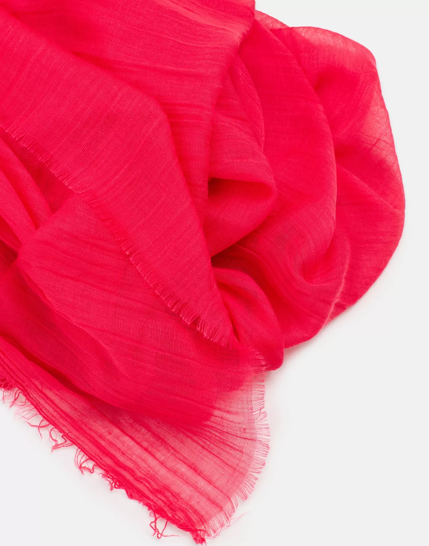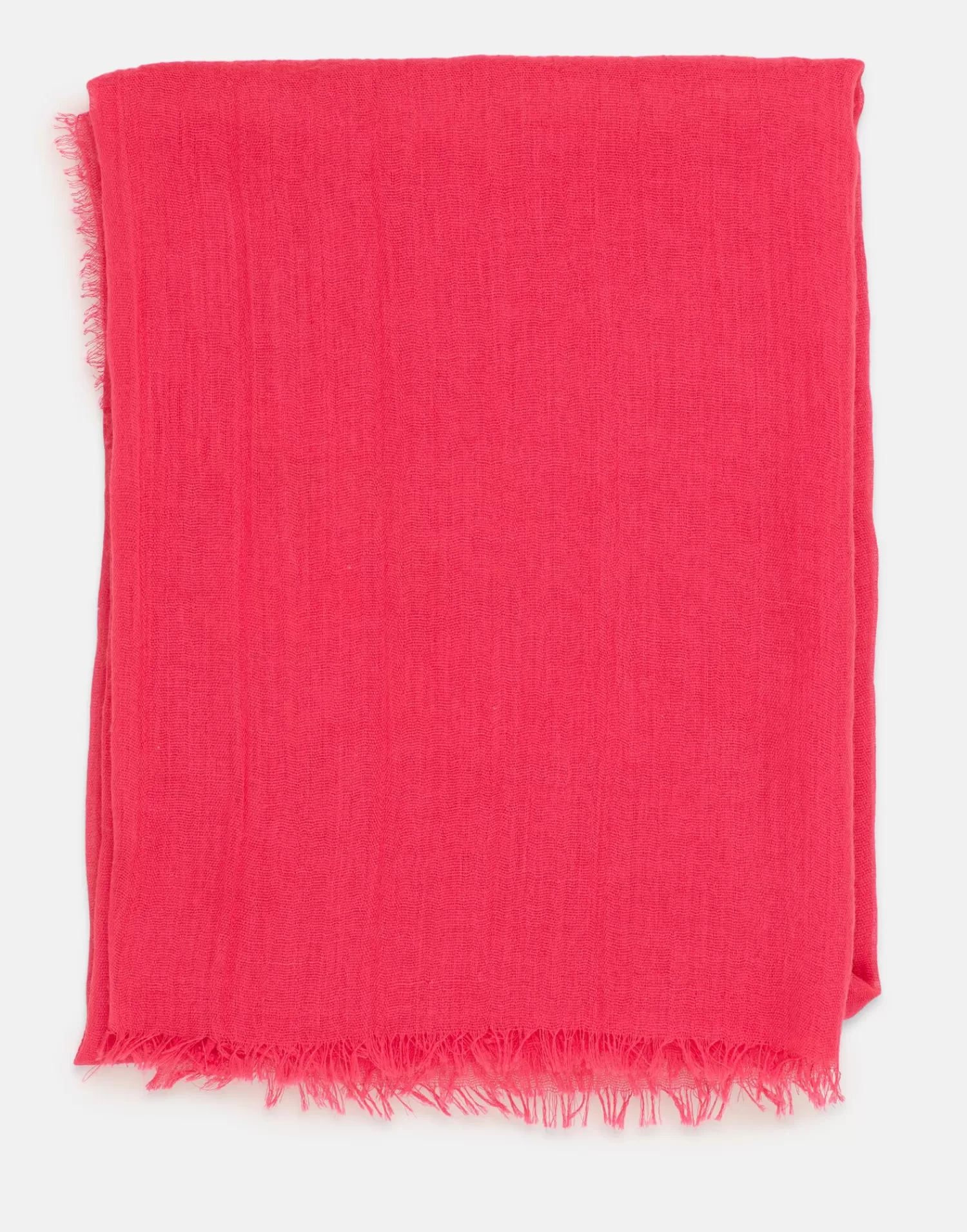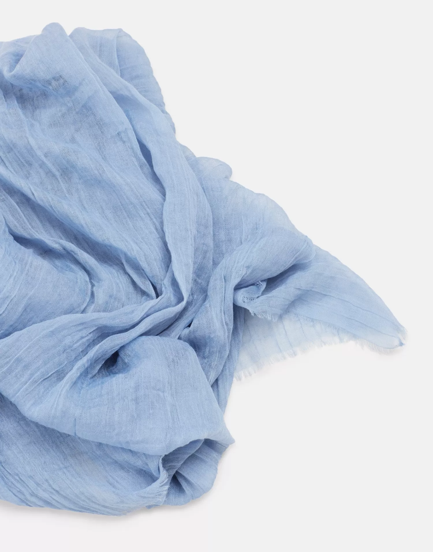 Plain scarf with creased fabric detail and raw-cut edges.