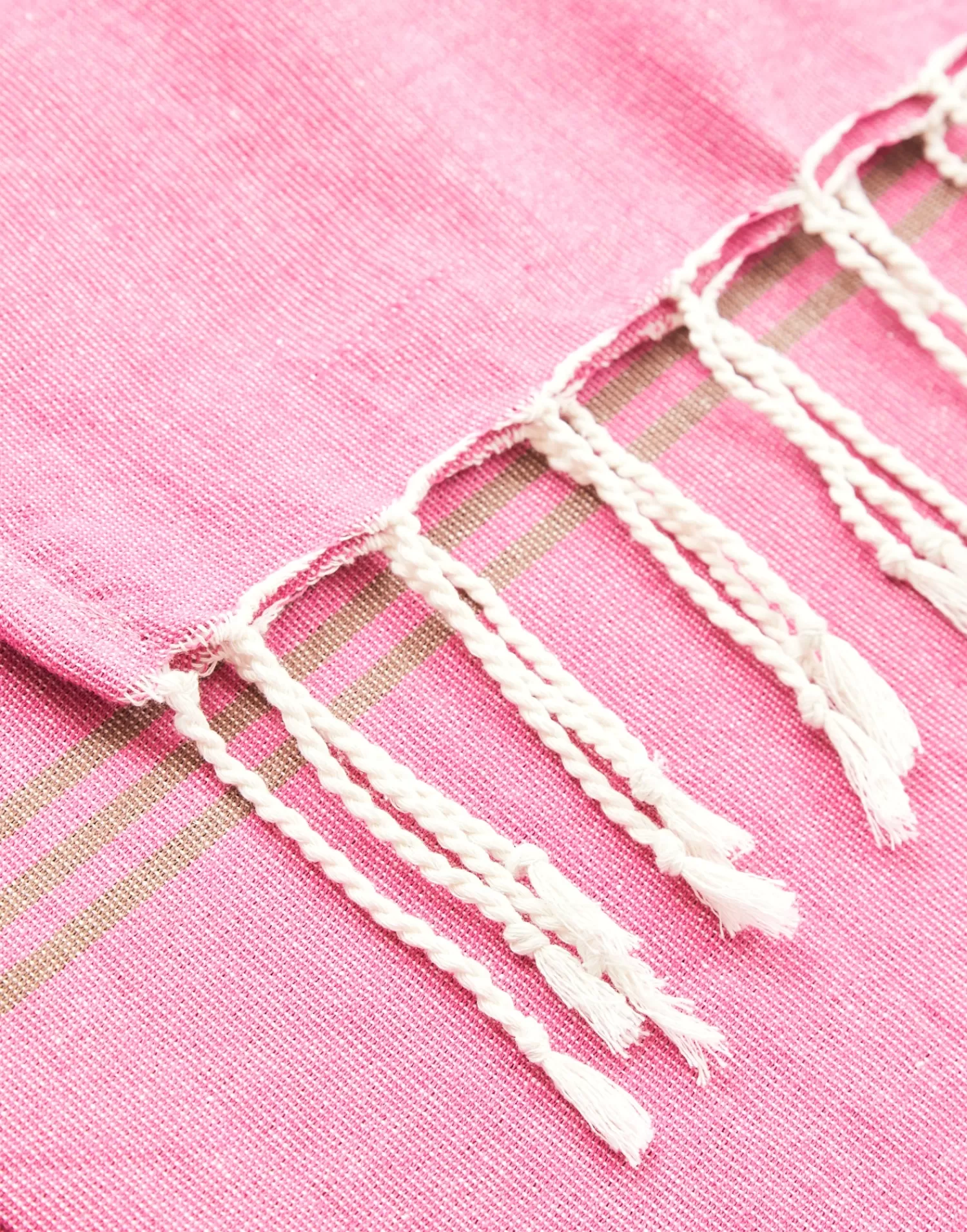 Cotton pareo with fringes and striped pattern.