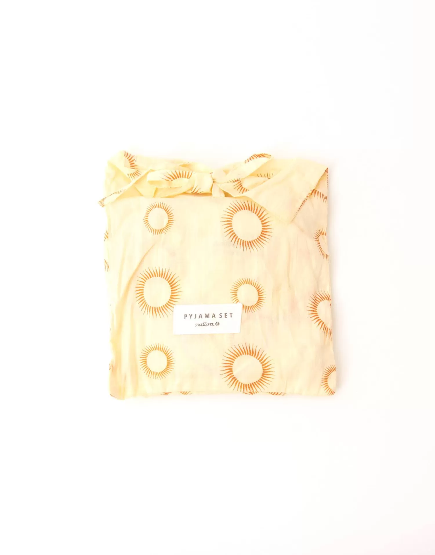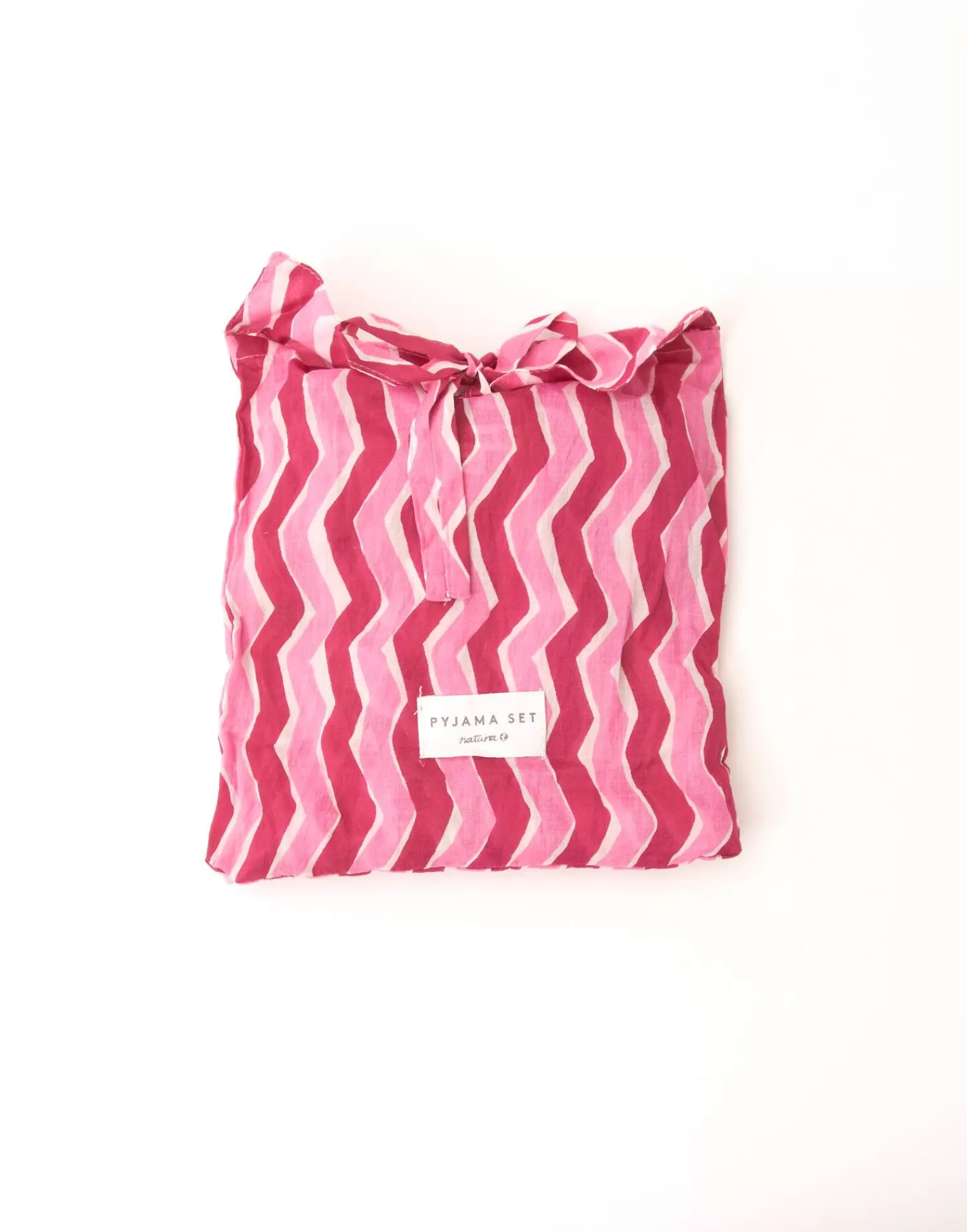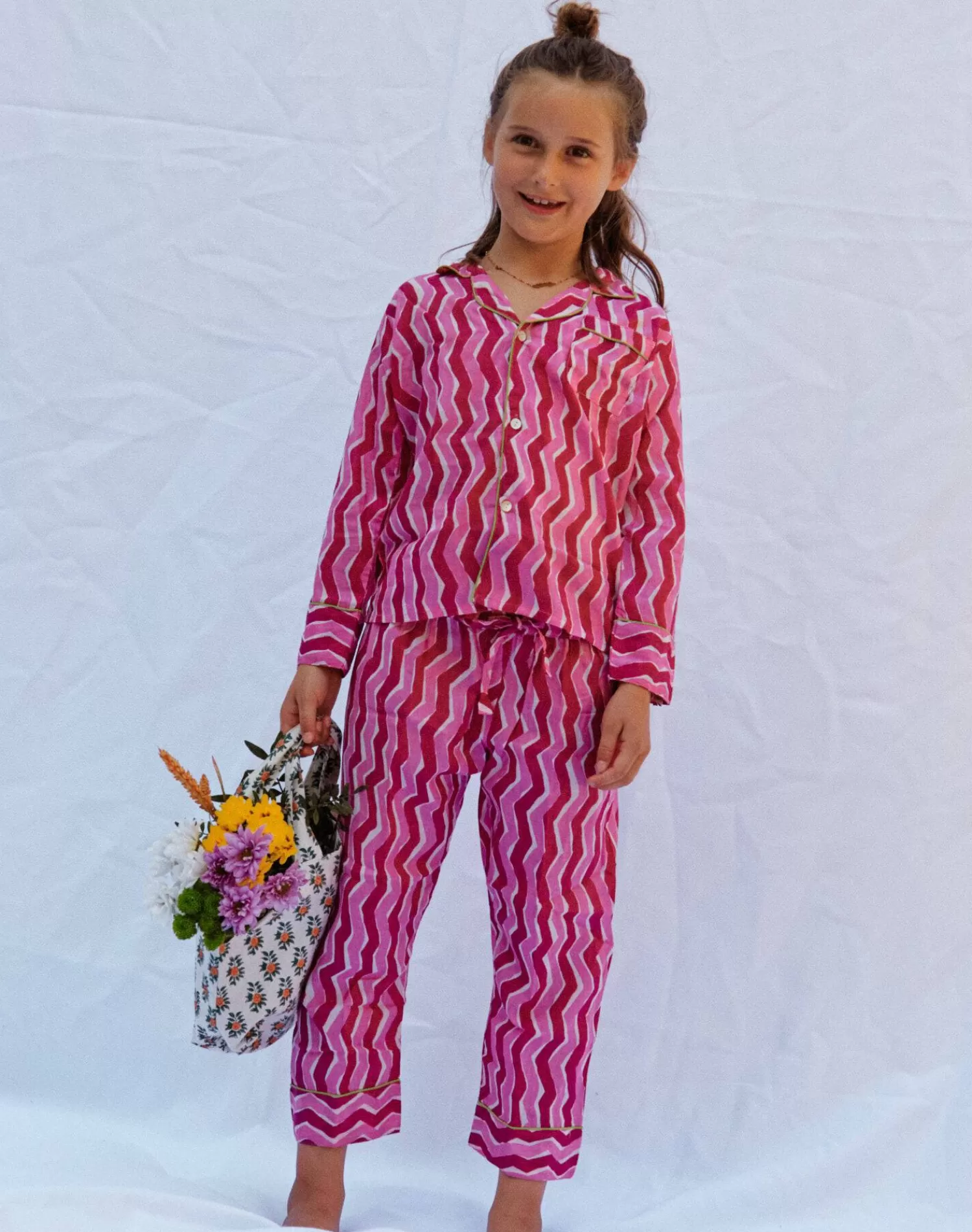 Cotton pyjama set featuring a long sleeved shirt and pants, available in three different prints.