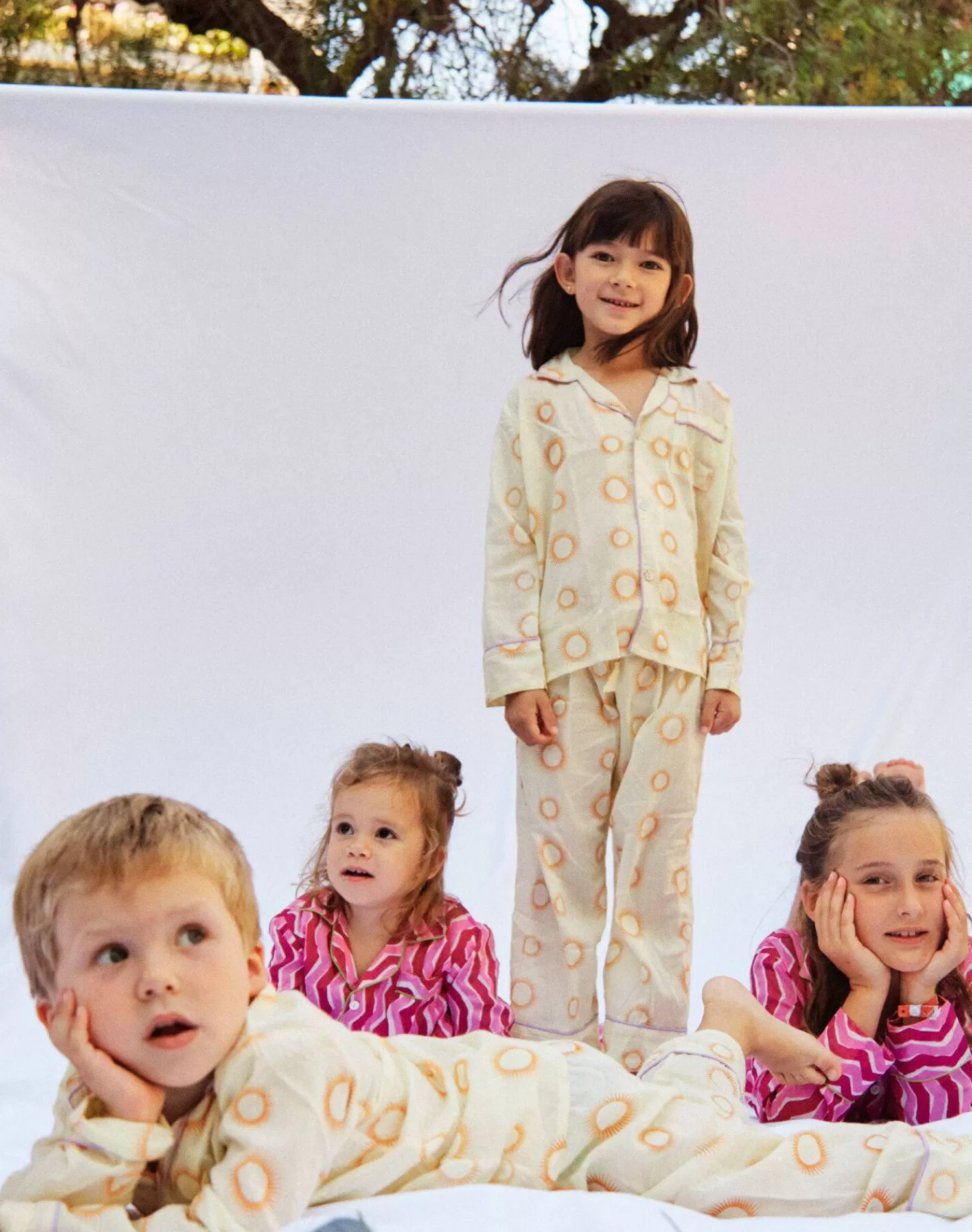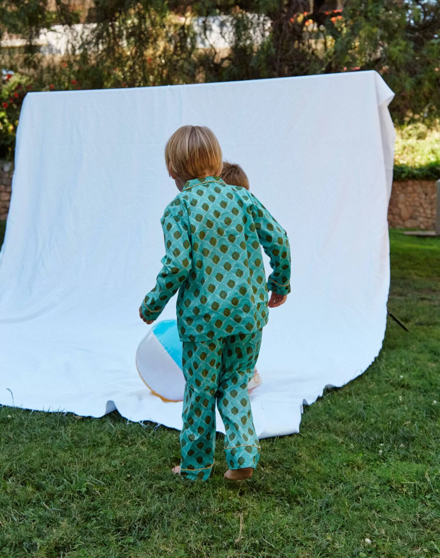 Cotton pyjama set featuring a long sleeved shirt and pants, available in three different prints.The shirt features a but…