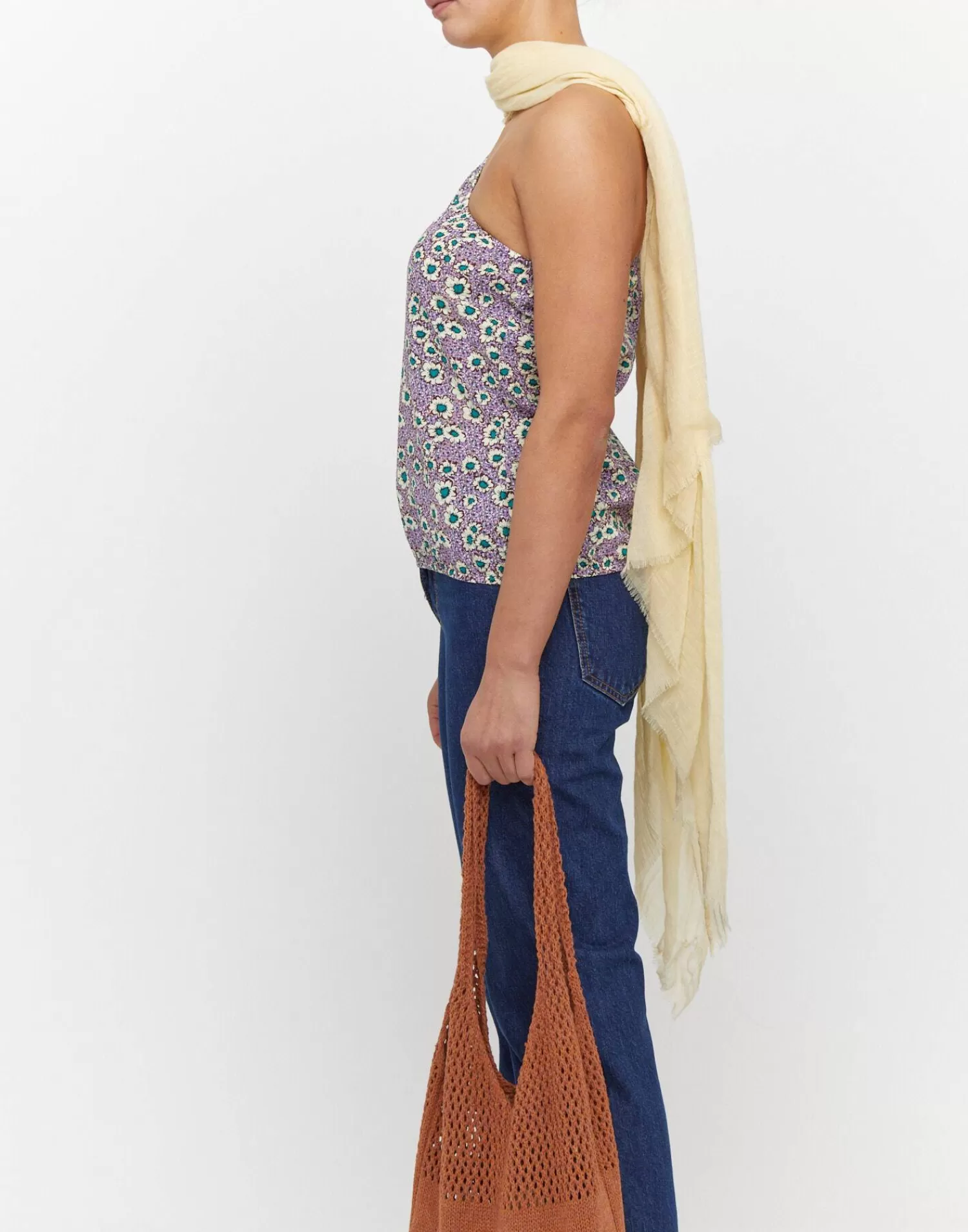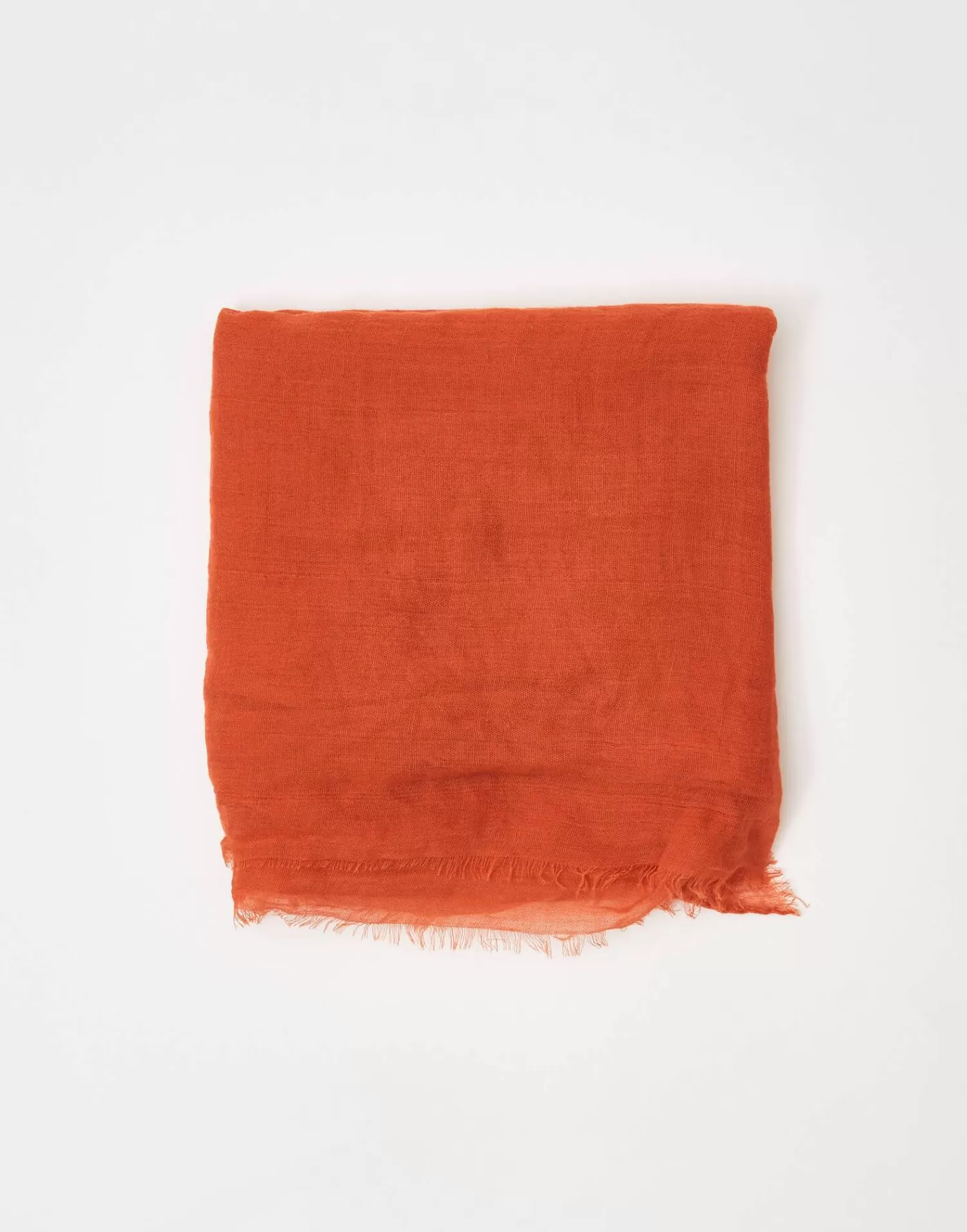 Soft scarf featuring raw cut edges, available in different colors.80×180 cm