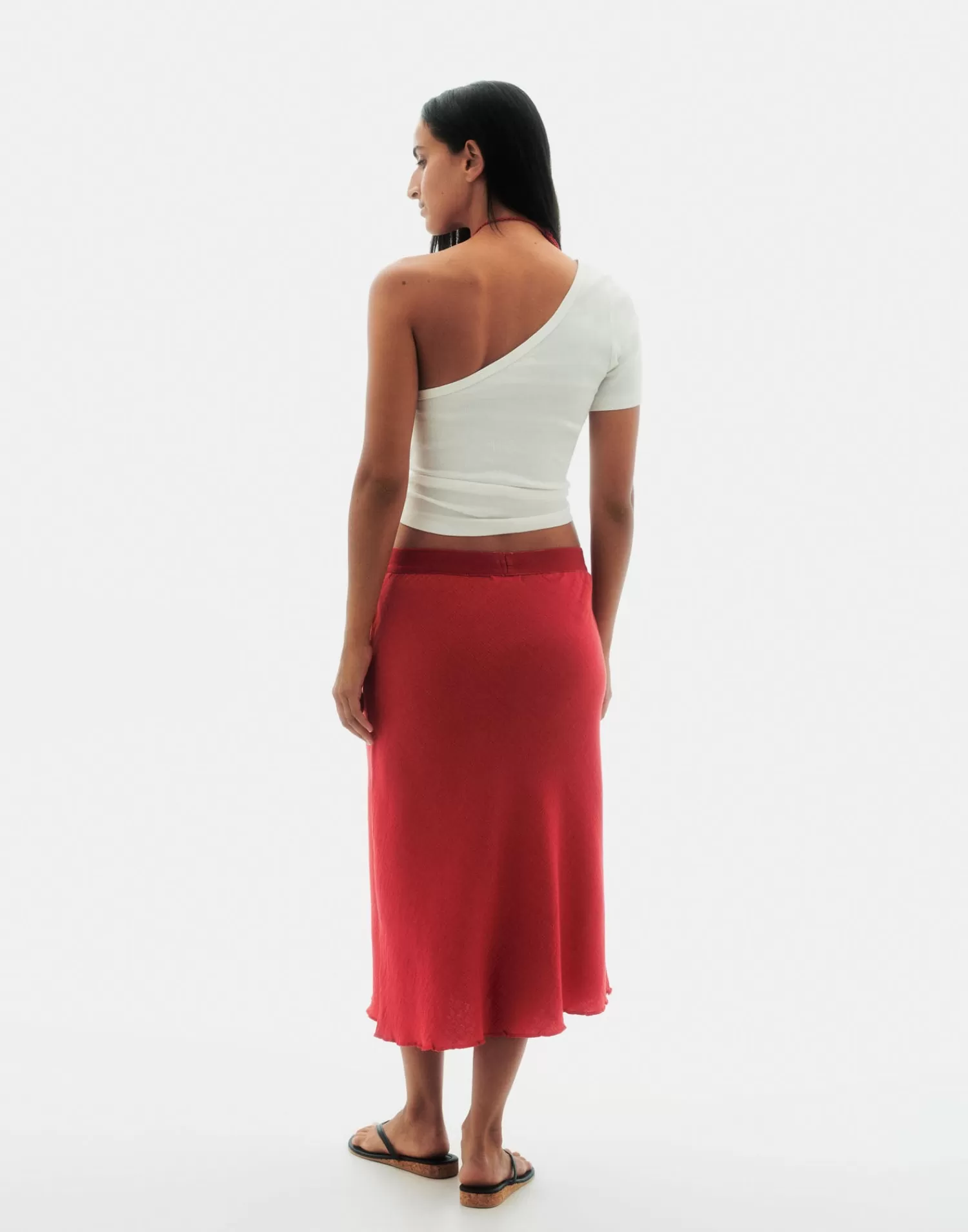 Midi skirt with elastic waistband and flared hemline.The model is 1.71 m tall.