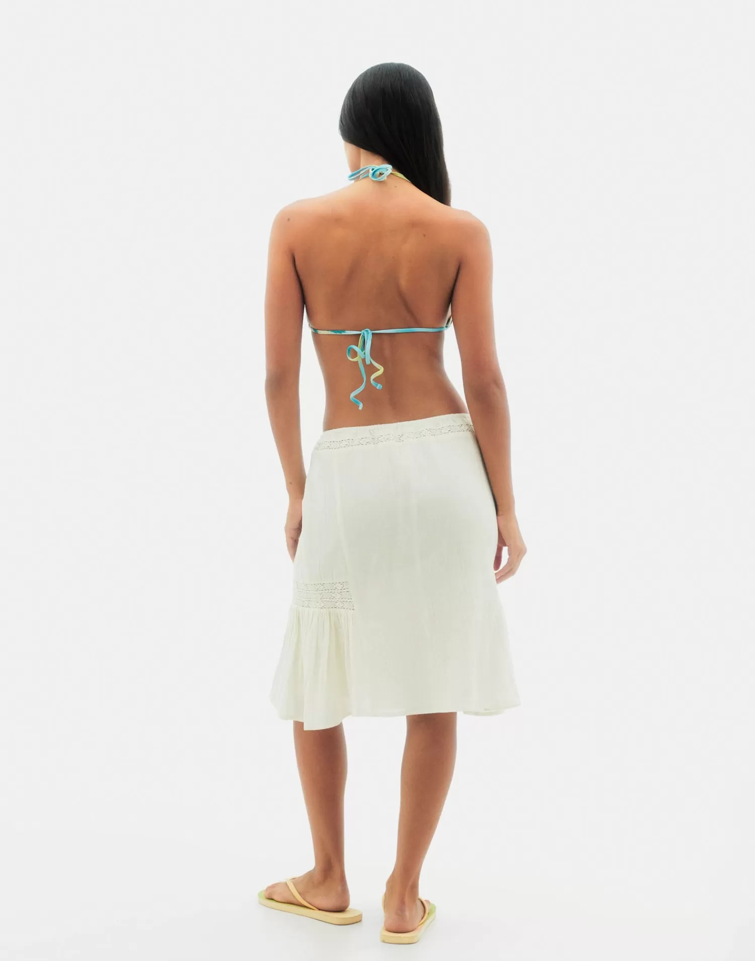 Cotton midi skirt featuring an elastic waistband, ruffle detail and lace appliqué.The model is 1.71 m tall.