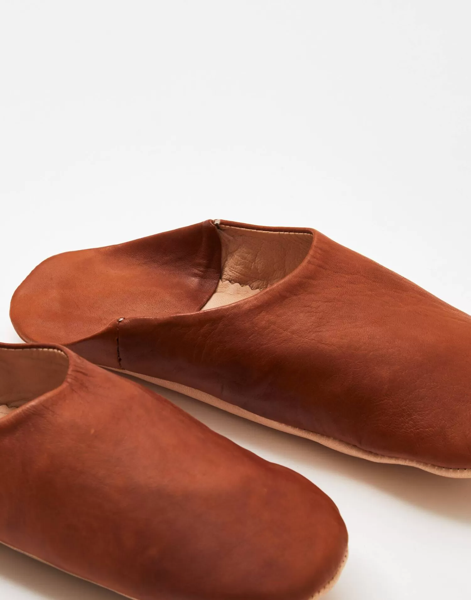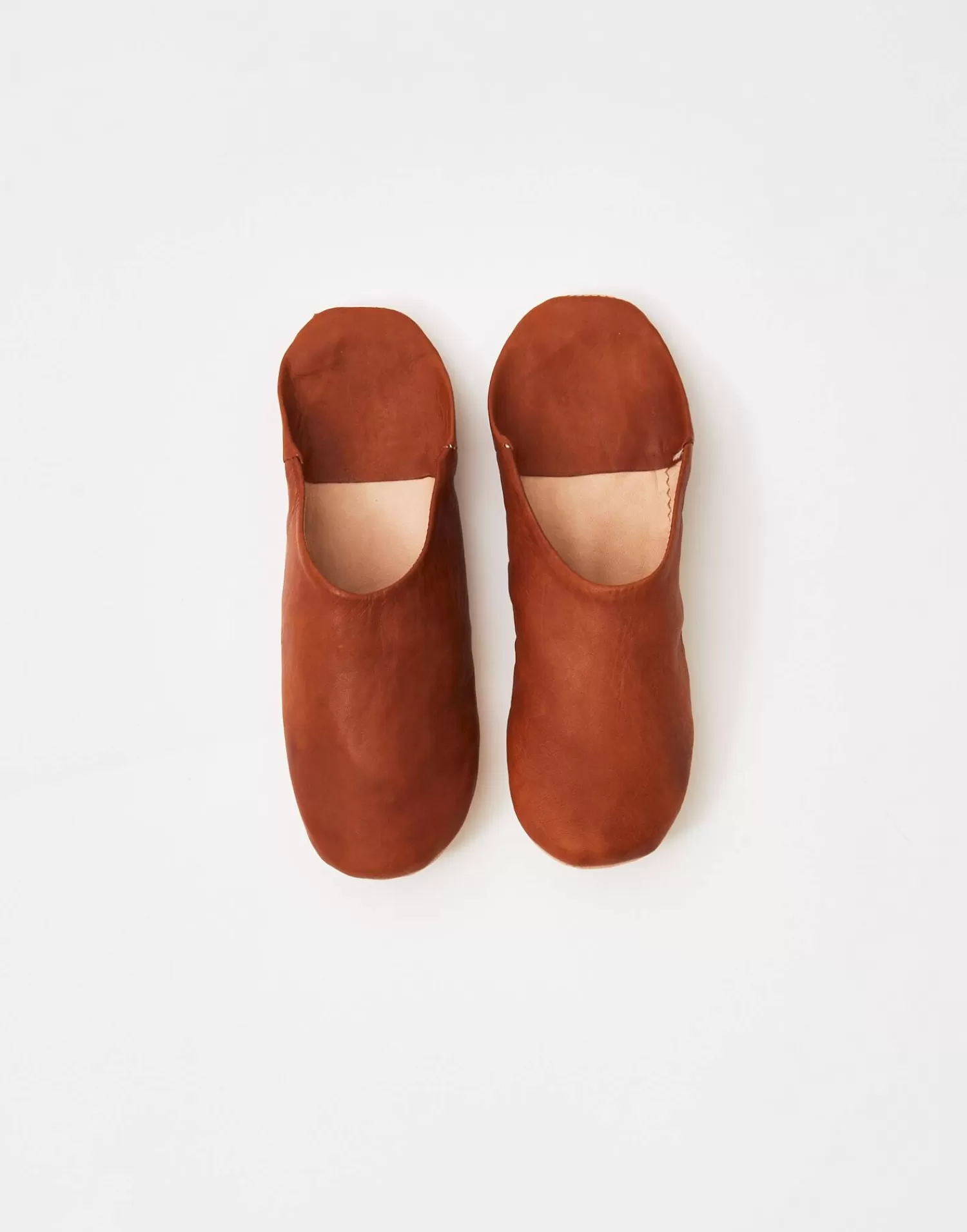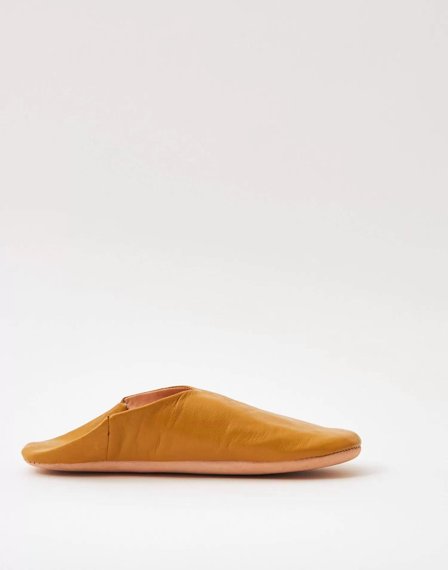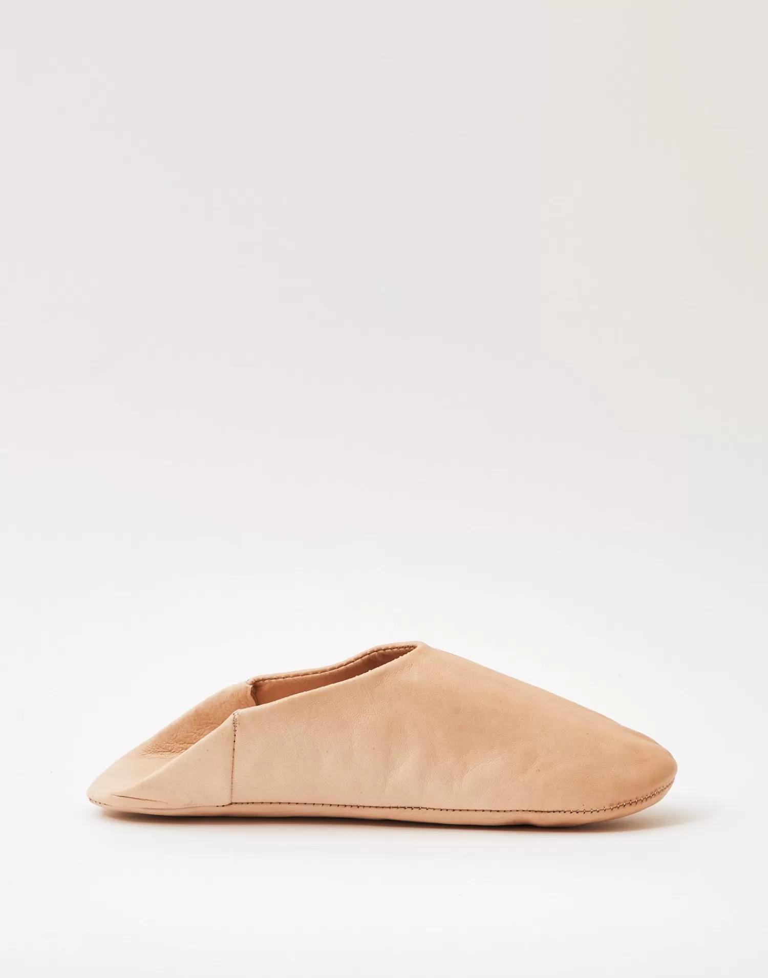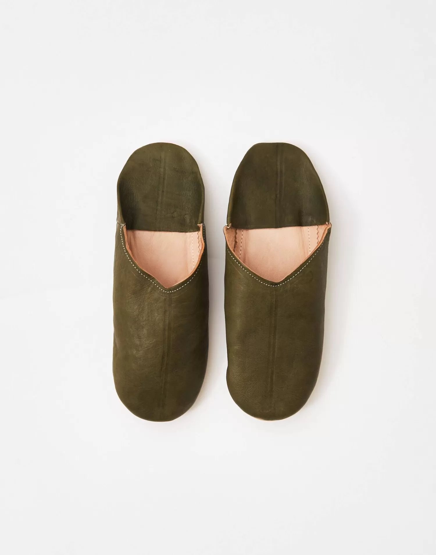 Handmade leather babouche from Morocco. Finished with a heel counter to hold the foot or fold it and use it as a sandal.