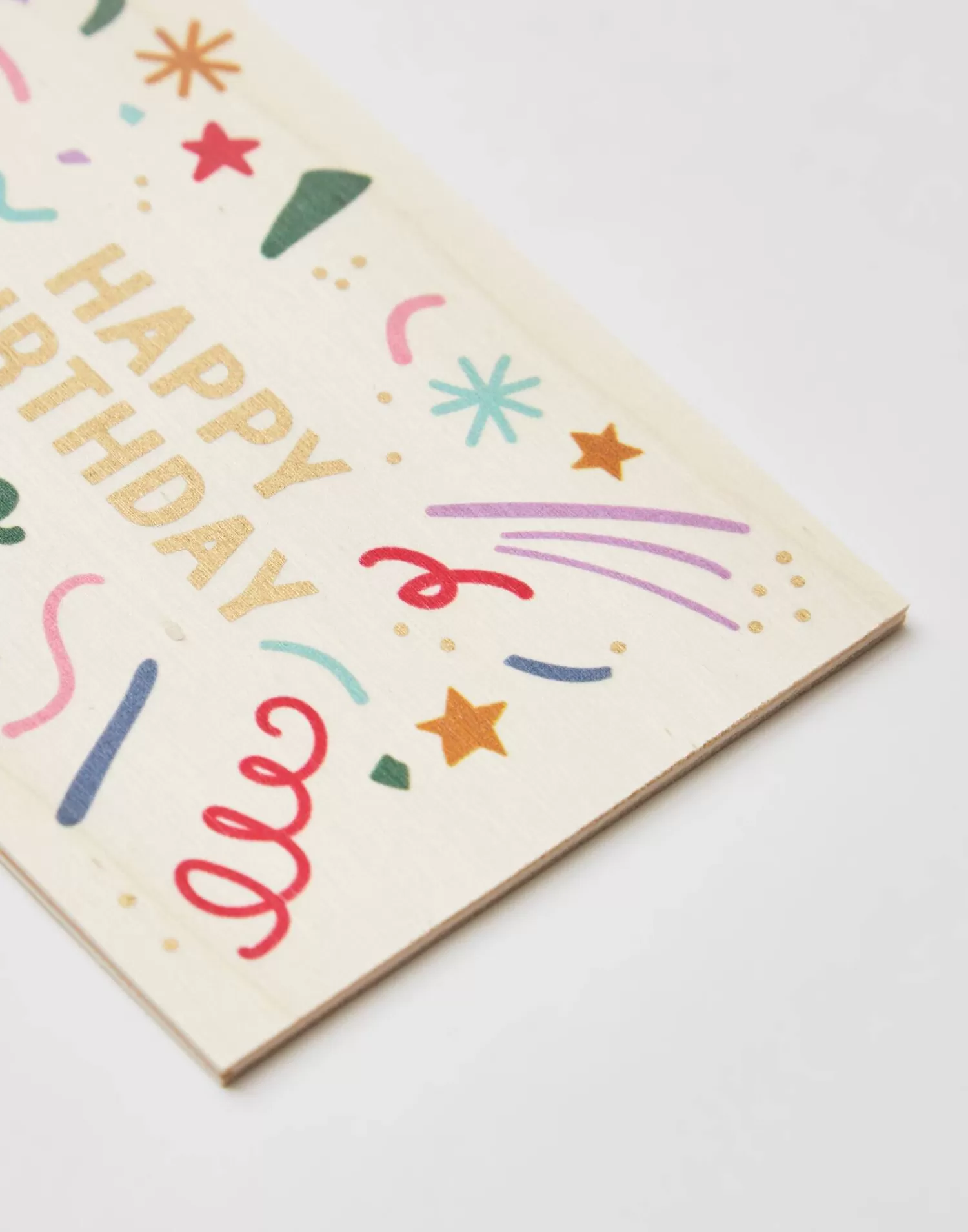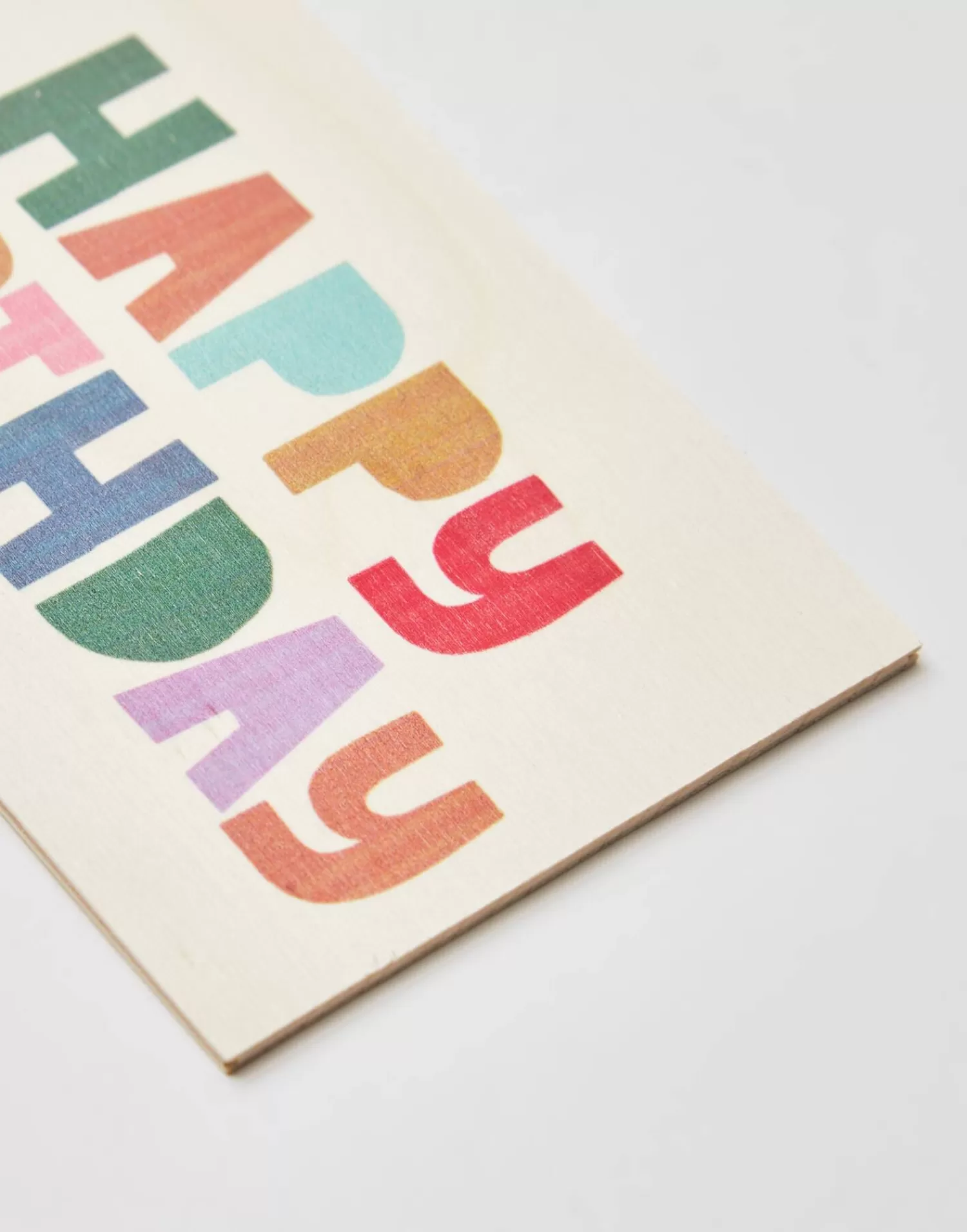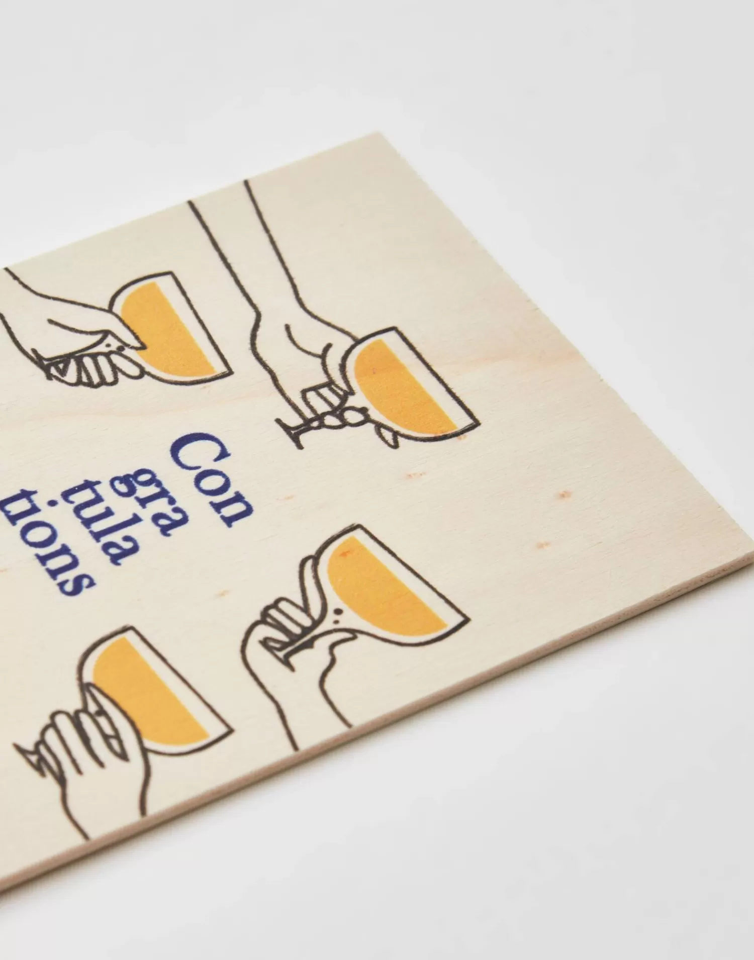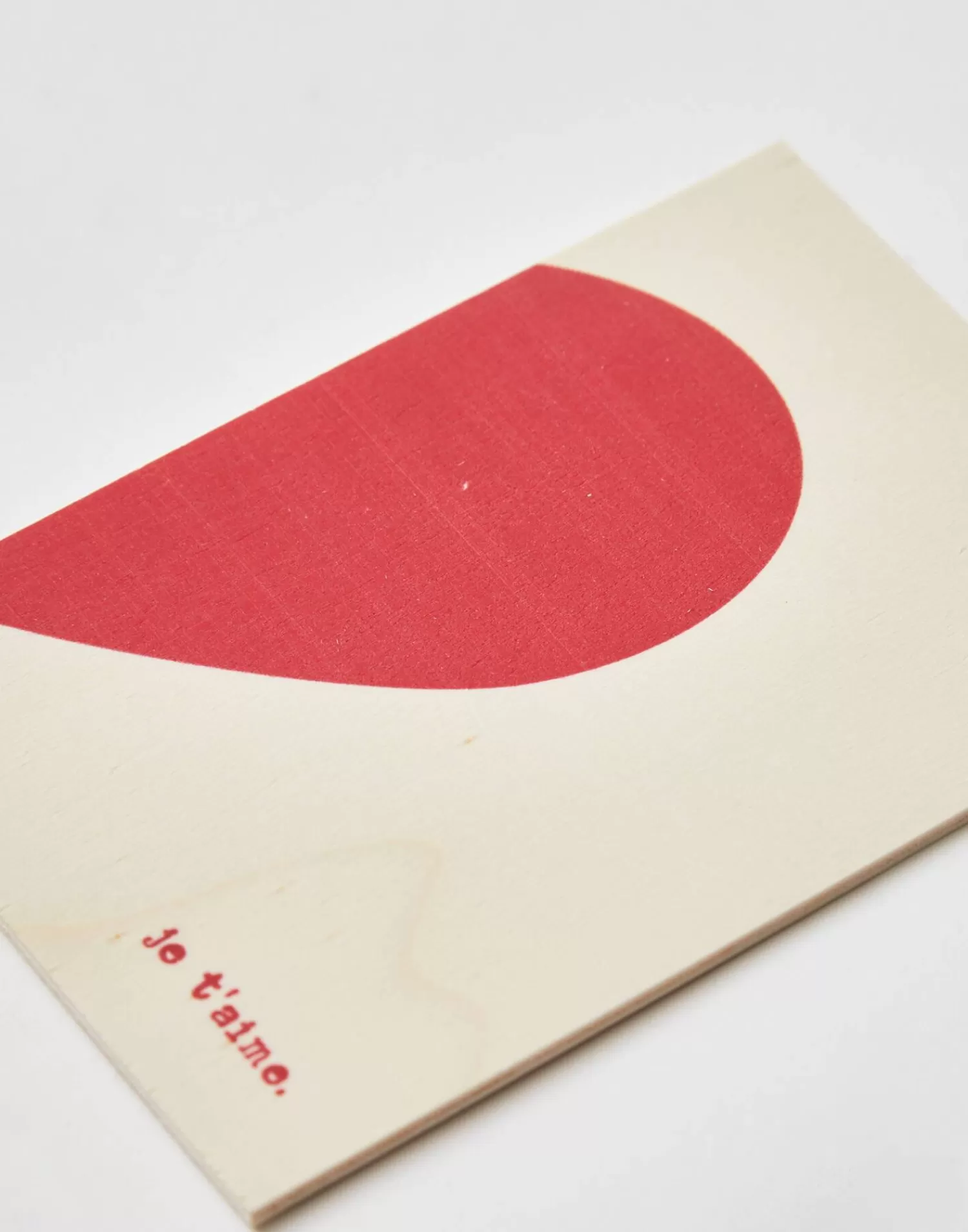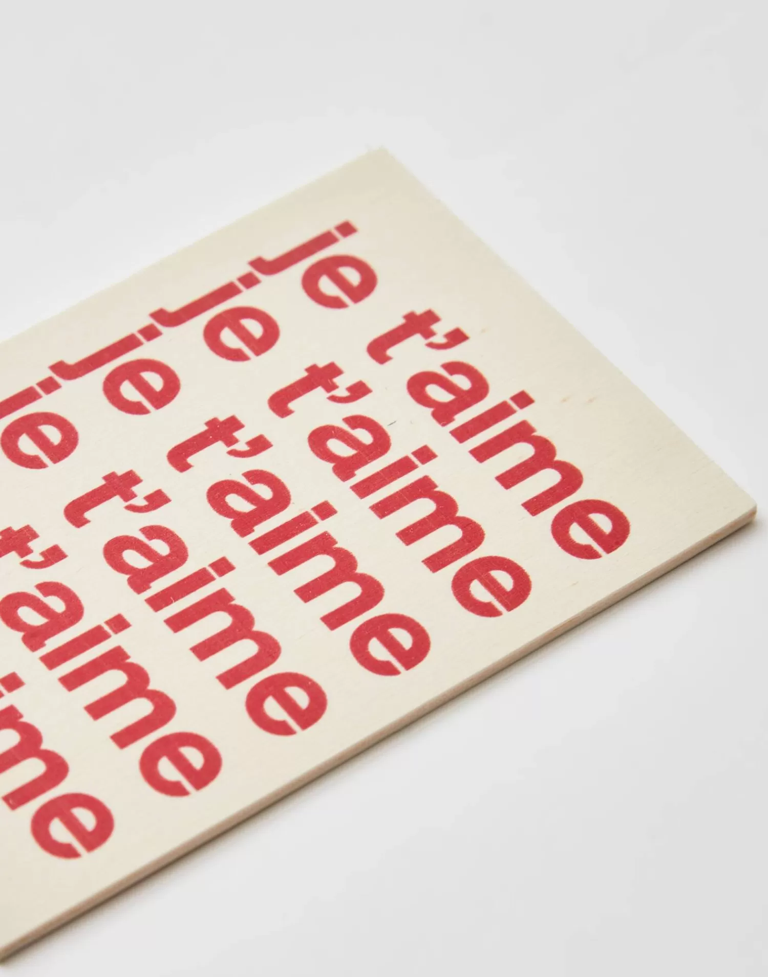 Wood postcard with design Natura.Space with lines to write the address and put the seal on the back.