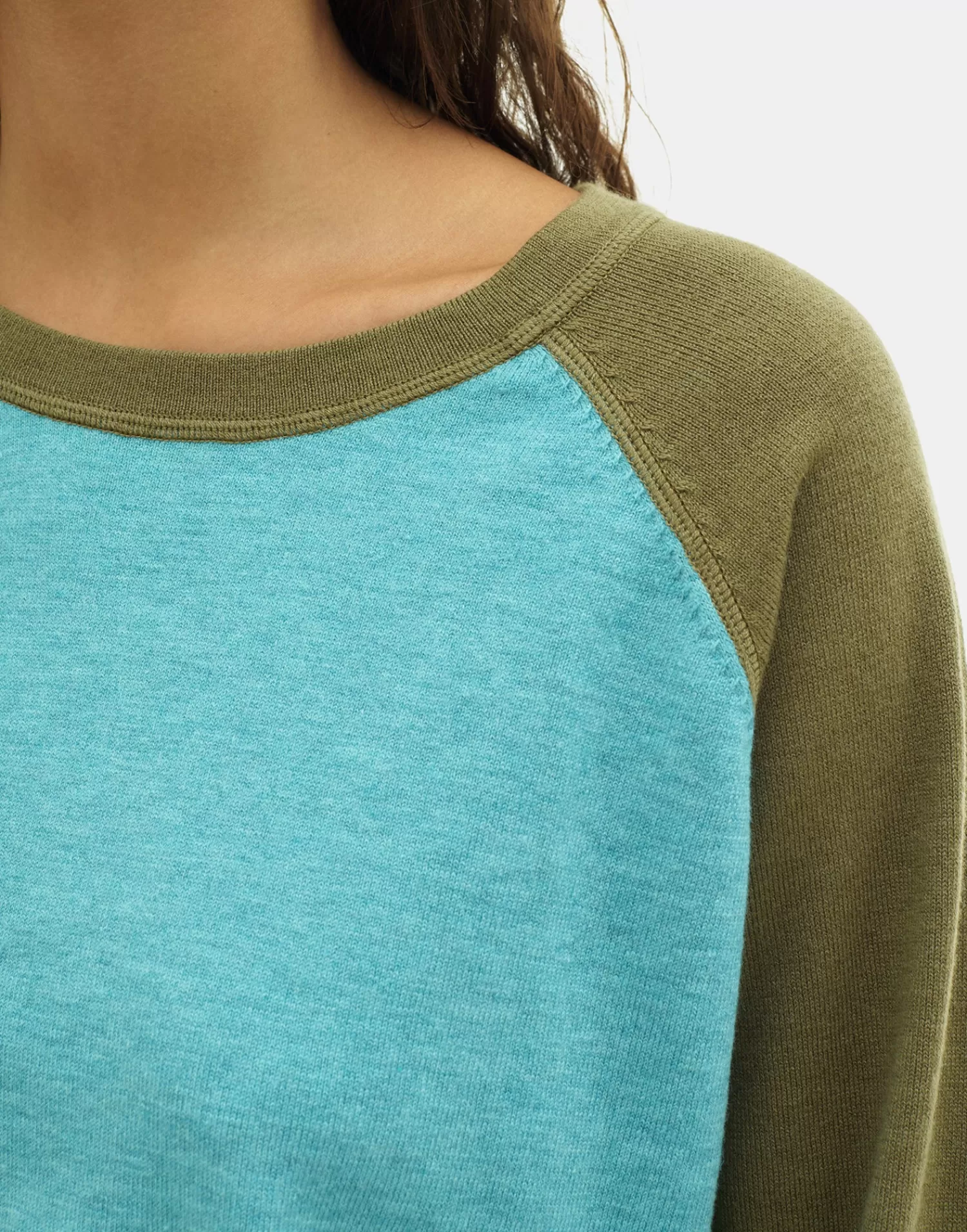Long-sleeved sweater featuring a crew neckline and elastic cuffs and hem.